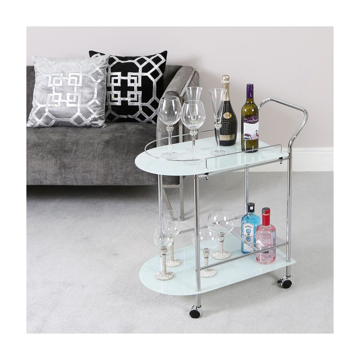 Bavaro Chrome Metal & White Glass Drinks Trolley - DSP