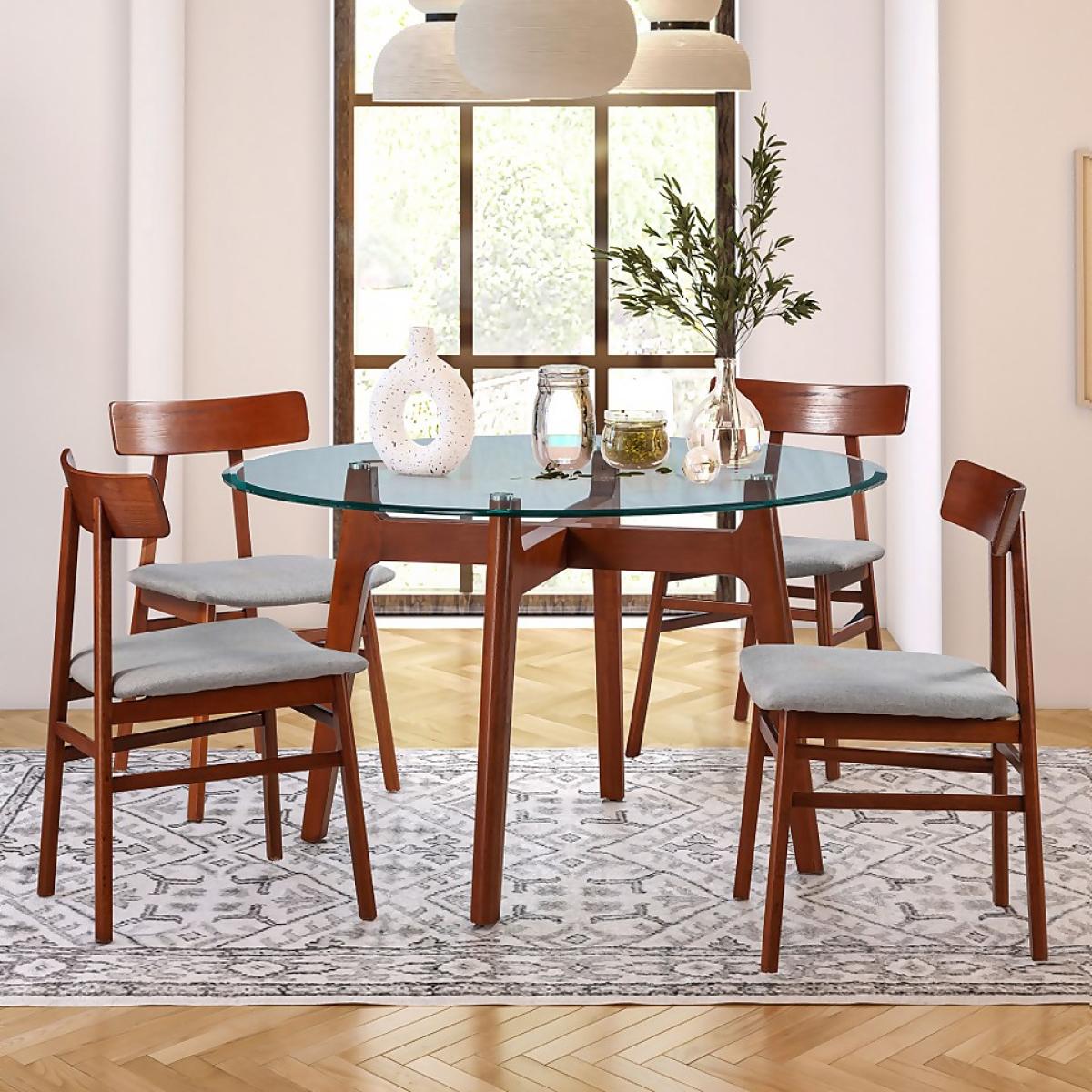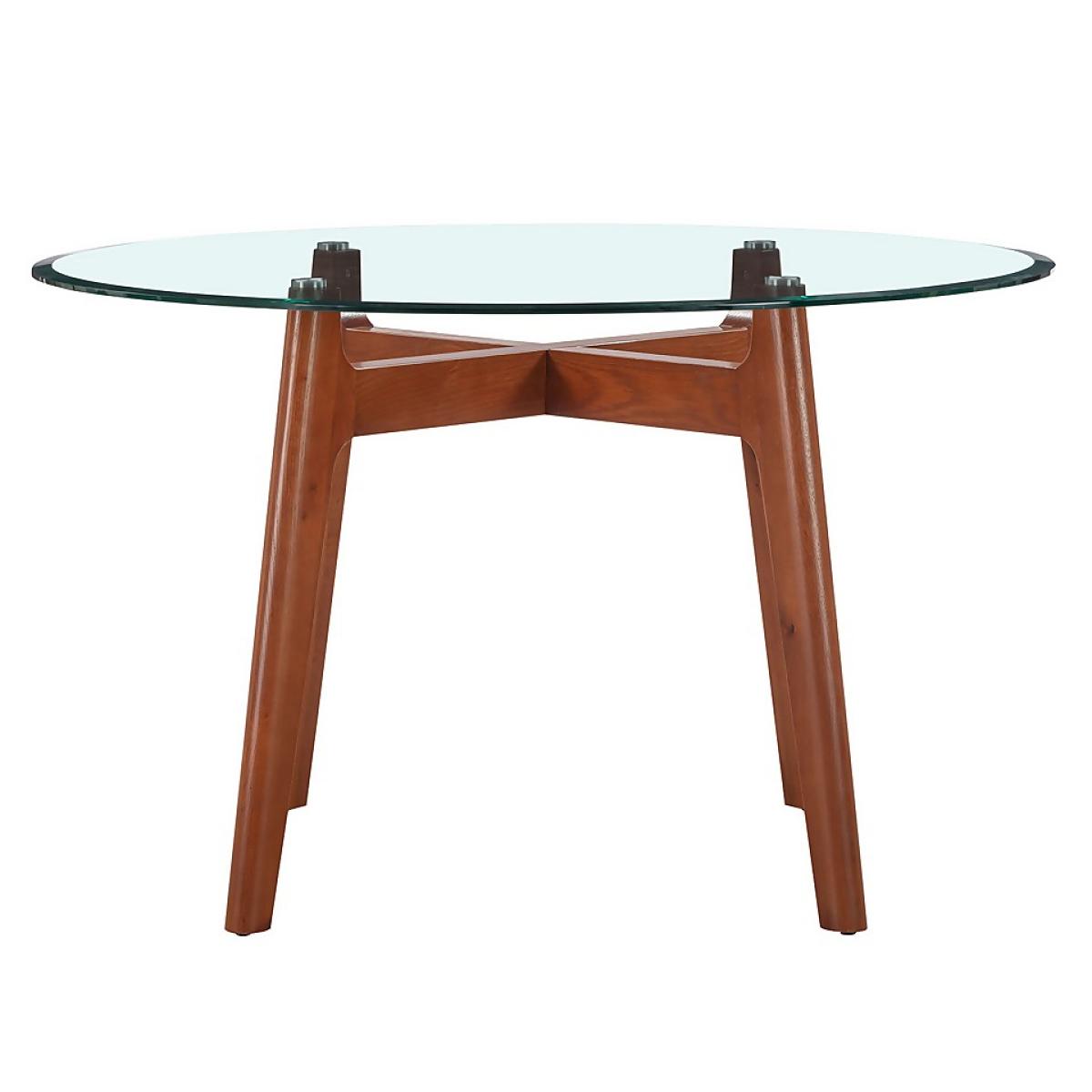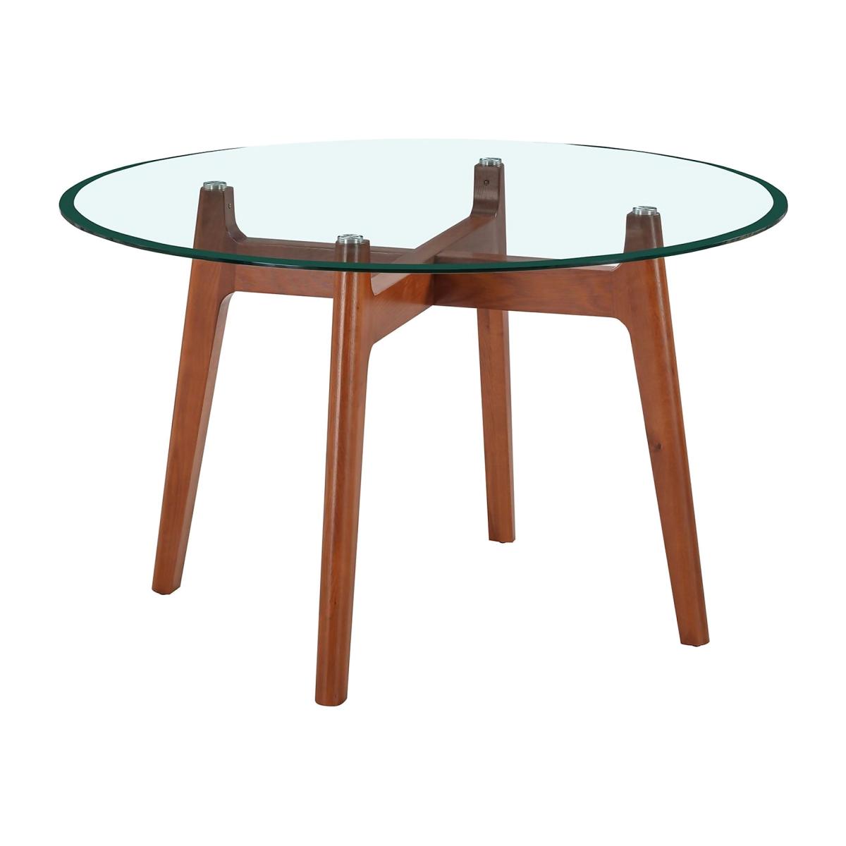 Mid century style but made for modern life. The Baxter dining table has retro feel with its round table top and strong, clean lines. The sturdy solid oak frame of this table has a walnut stain finish and for a modern twist, we've added a toughened glass table top making it perfect for a busy home.