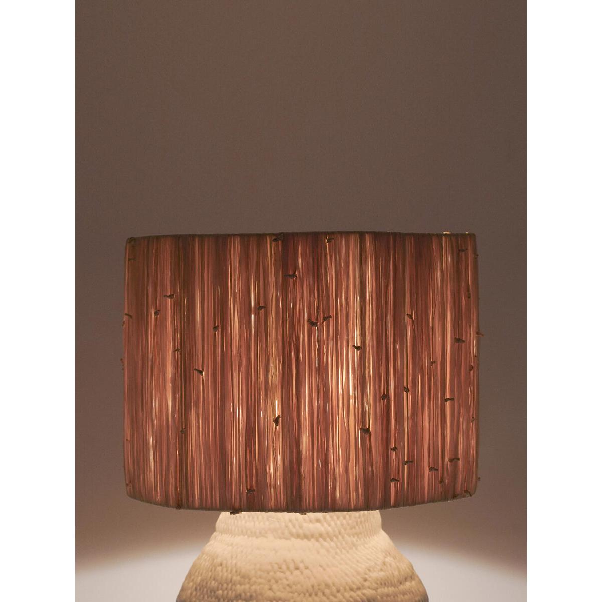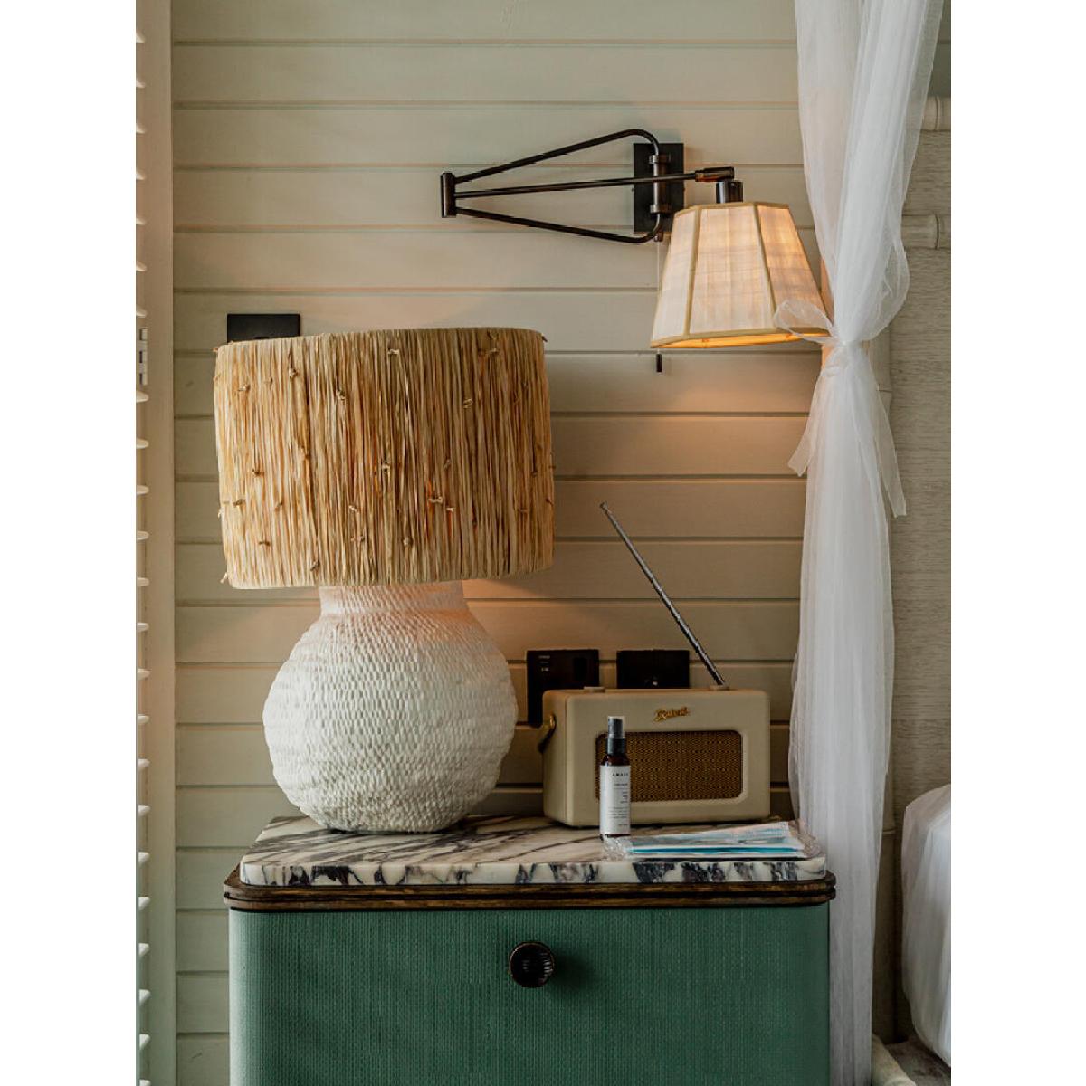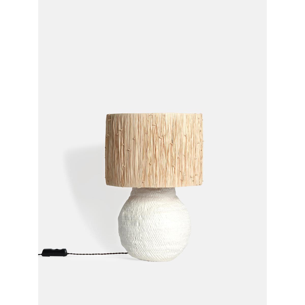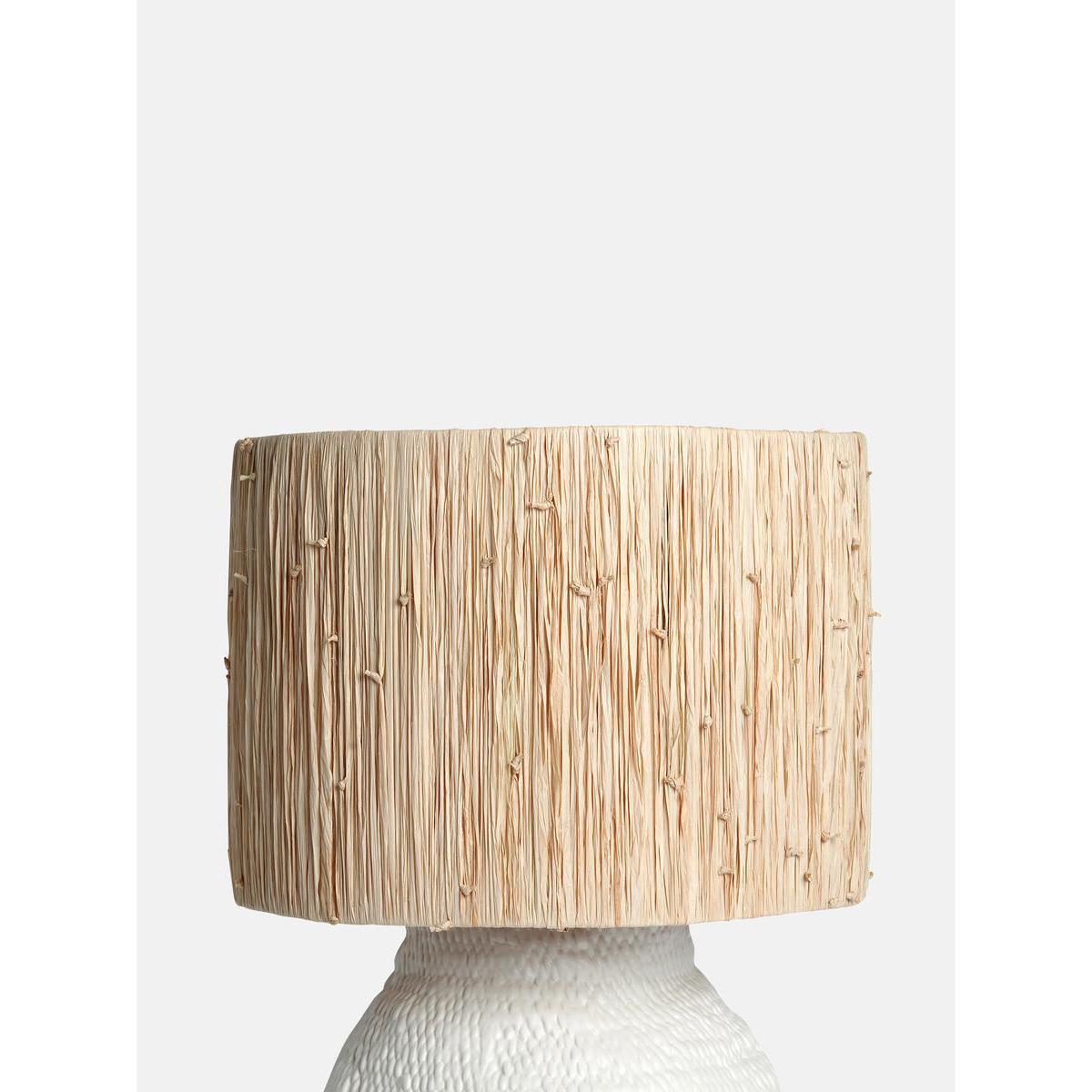 Lamp with hand tied shade in natural raffia Textured ceramic base Made in Portugal Used in the bedrooms in our beach Houses