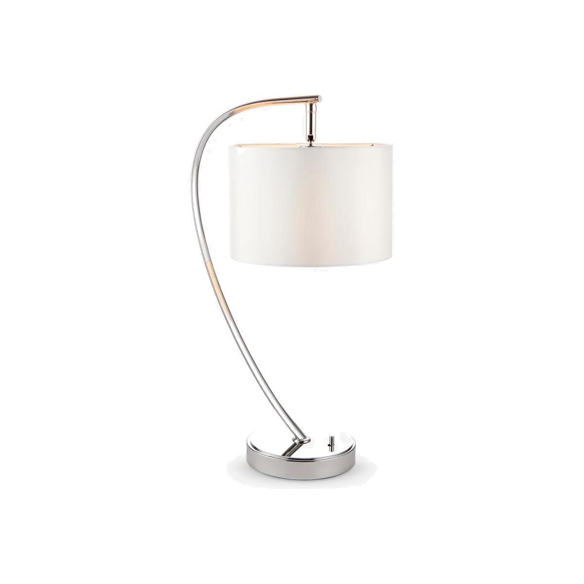 Designed with a gentle arch, this elegant table lamp is made from metal in a chrome-effect finish and features a faux silk lampshade. It offers a warm glow of light and is ideal for your bedside.