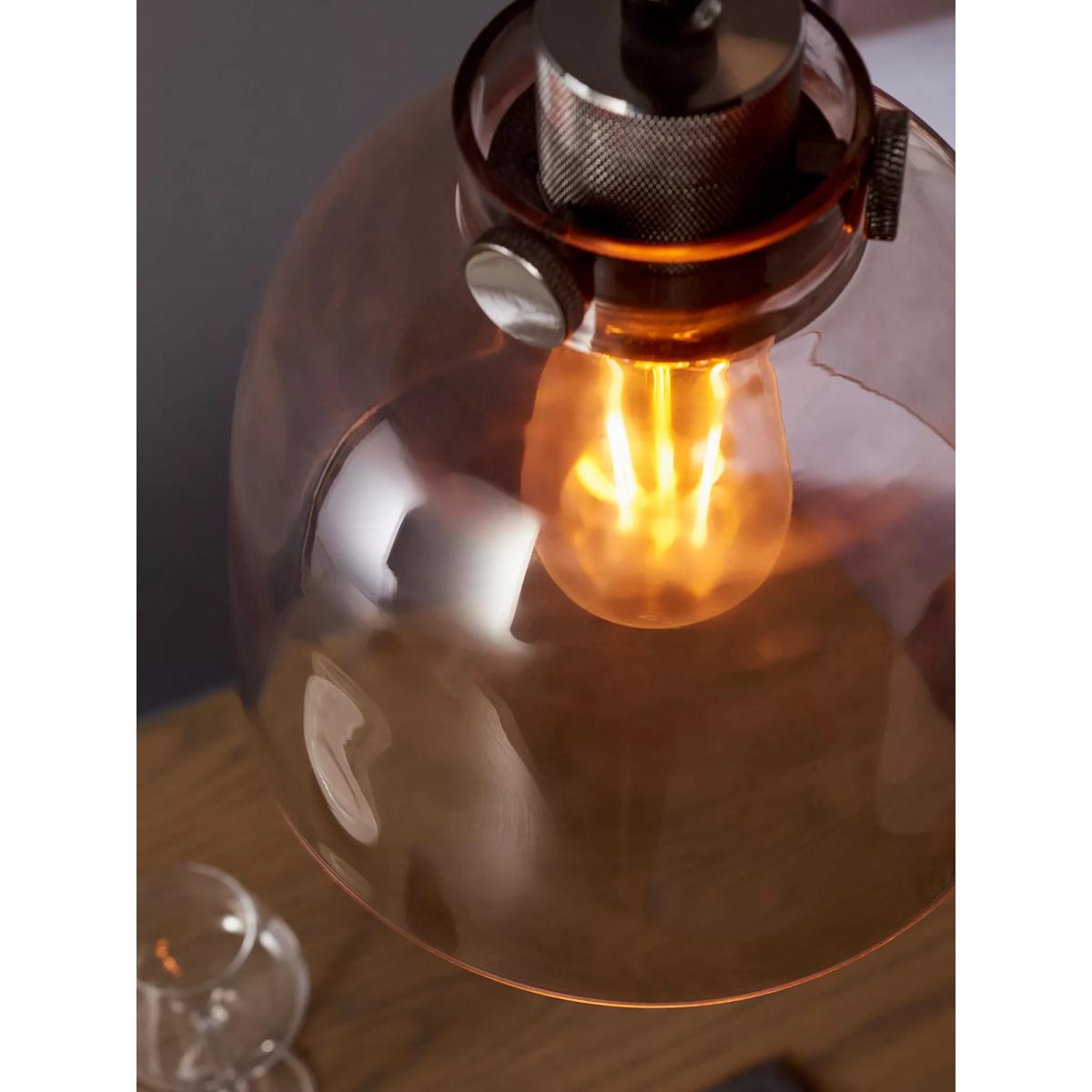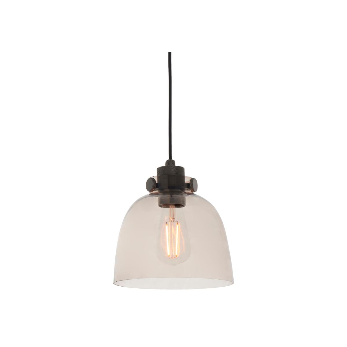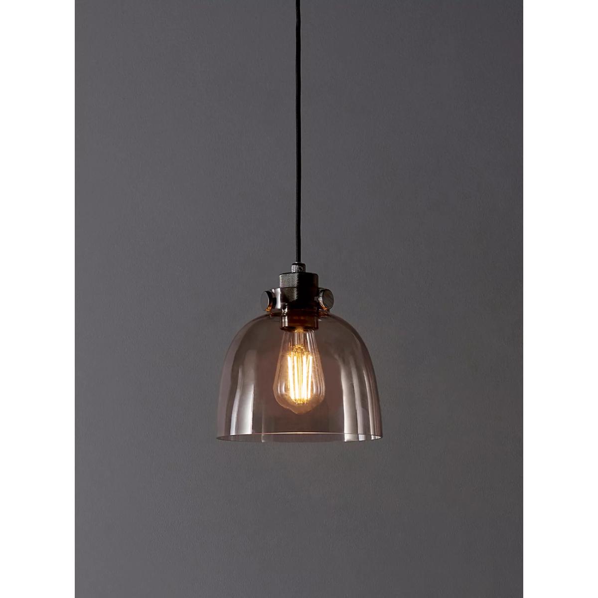 The detailing on the matt black painted metalwork of this glass pendant are the finishing touches that make this light an industrial piece. The smoked tinted glass shade gives enough transparency for a stylish bulb.