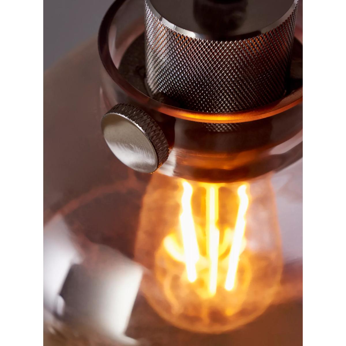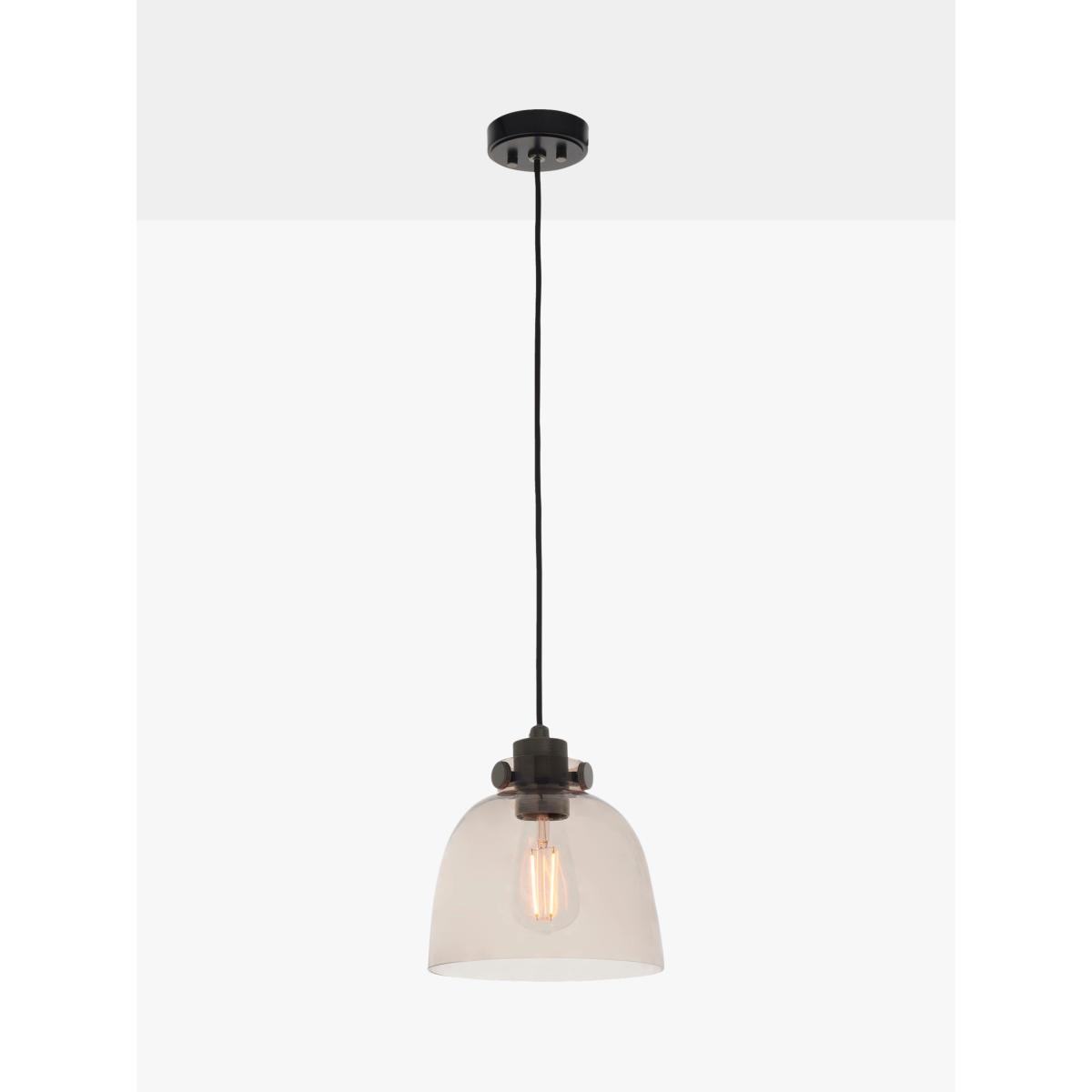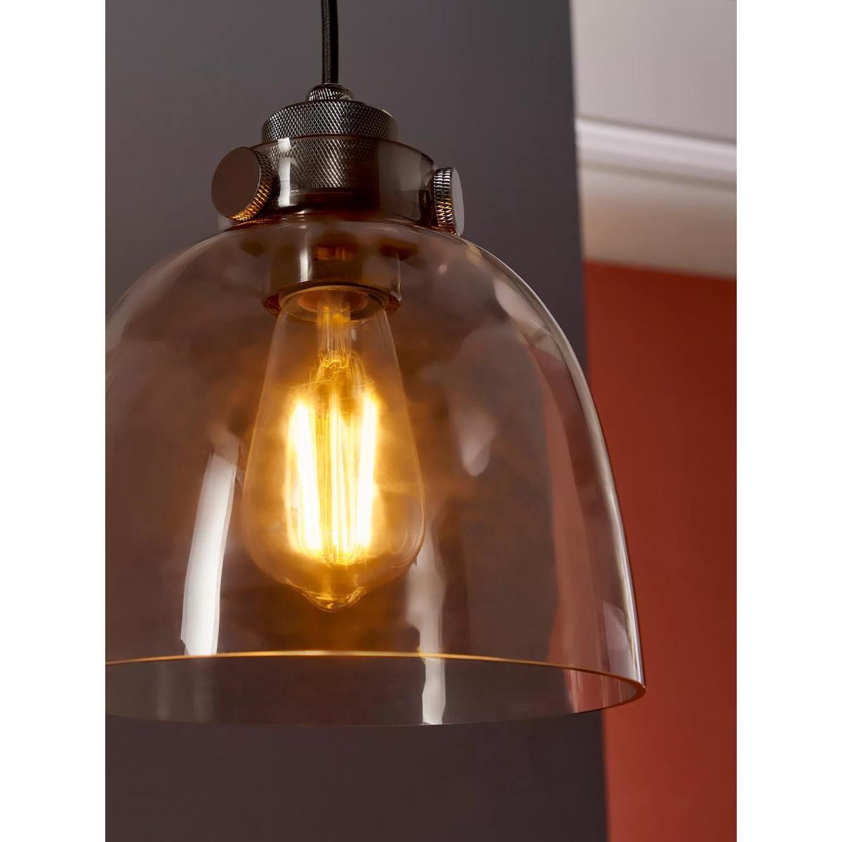 The detailing on the matt black painted metalwork of this glass pendant are the finishing touches that make this light an industrial piece. The smoked tinted glass shade gives enough transparency for a stylish bulb.