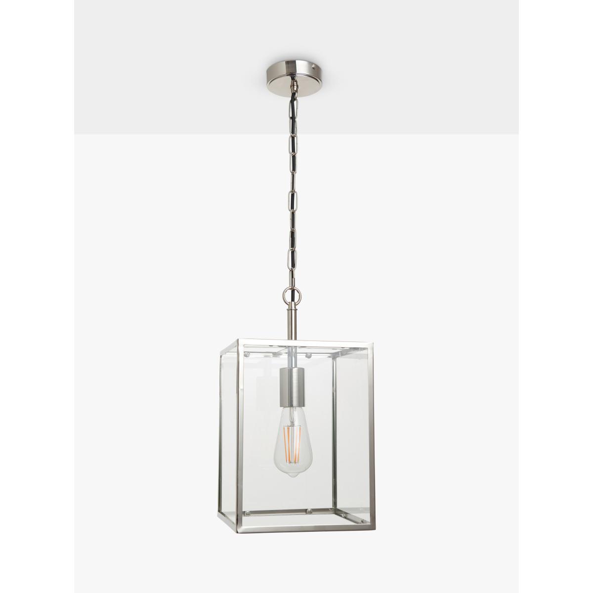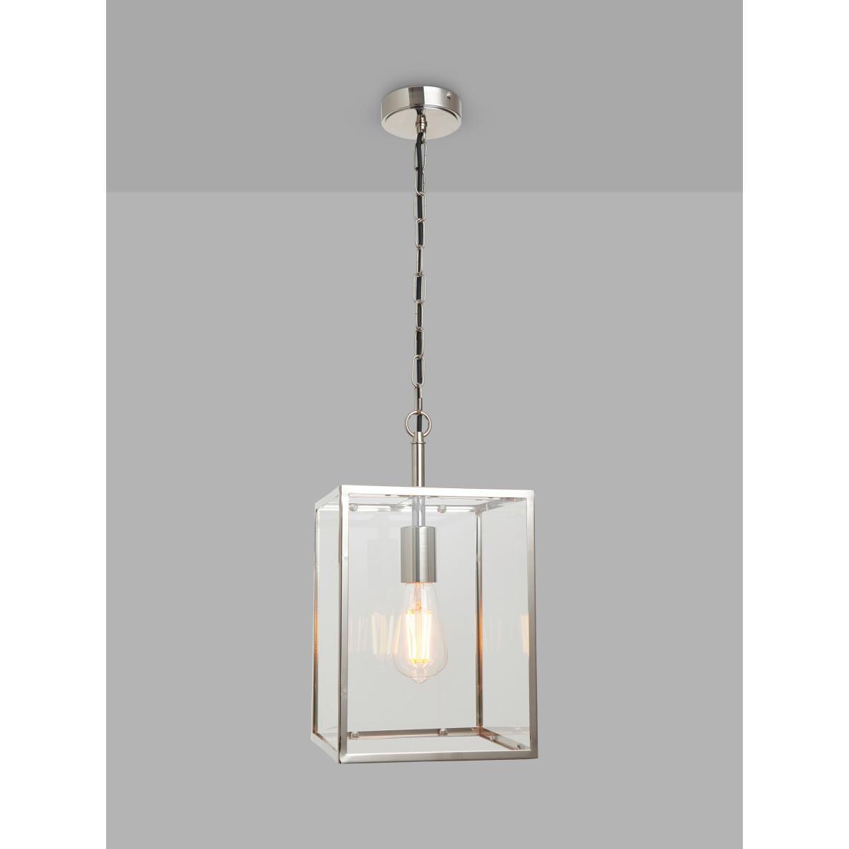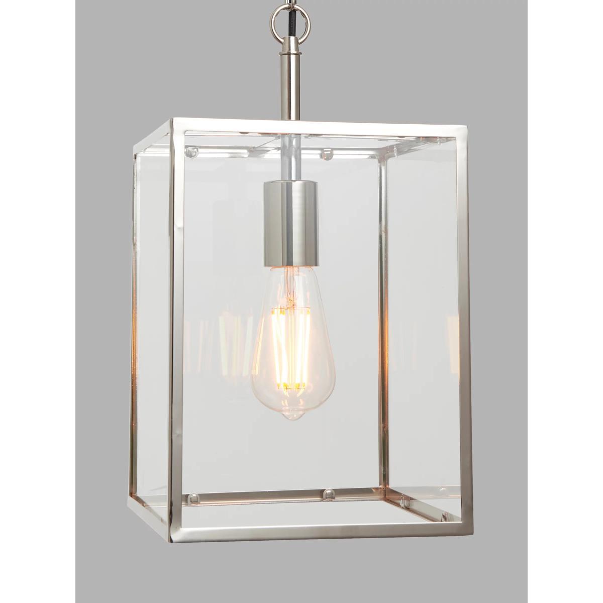 Suspended from a height-adjustable chain cable for perfect positioning in your space, this ceiling light is clean, classic and timeless. It's made from metal in a metallic nickel finish and framed with clear glass panels. Choose an LED bulb with a decorative filament to create an eye-catching look.