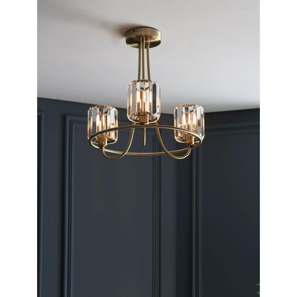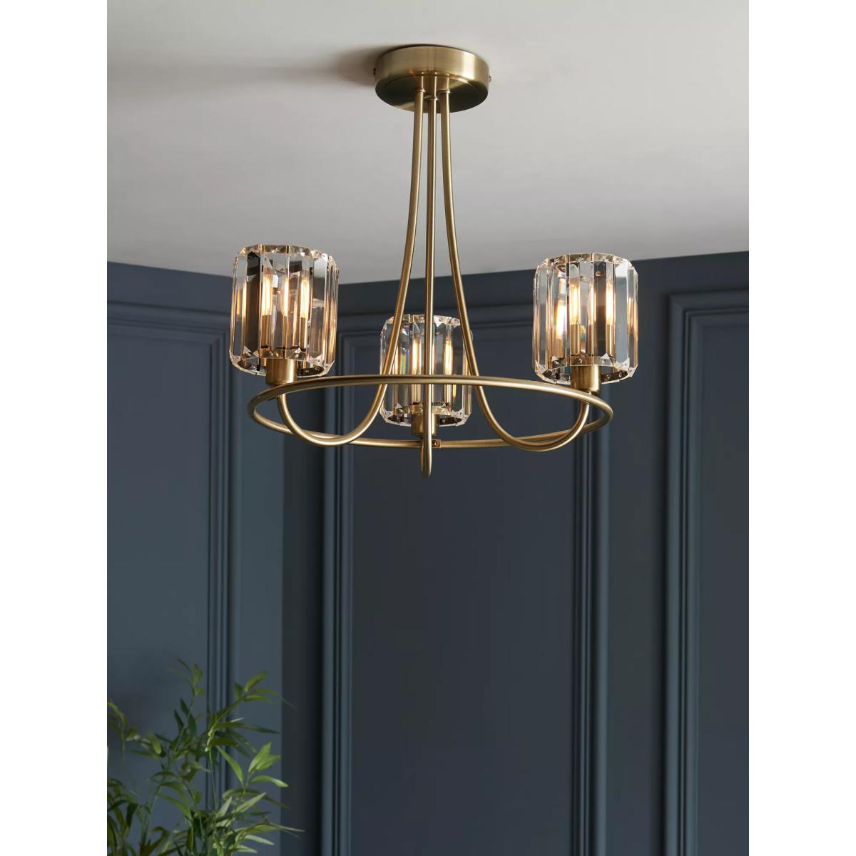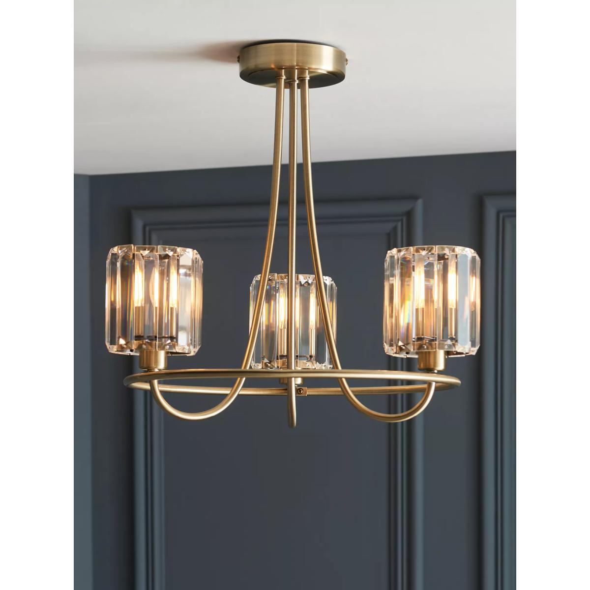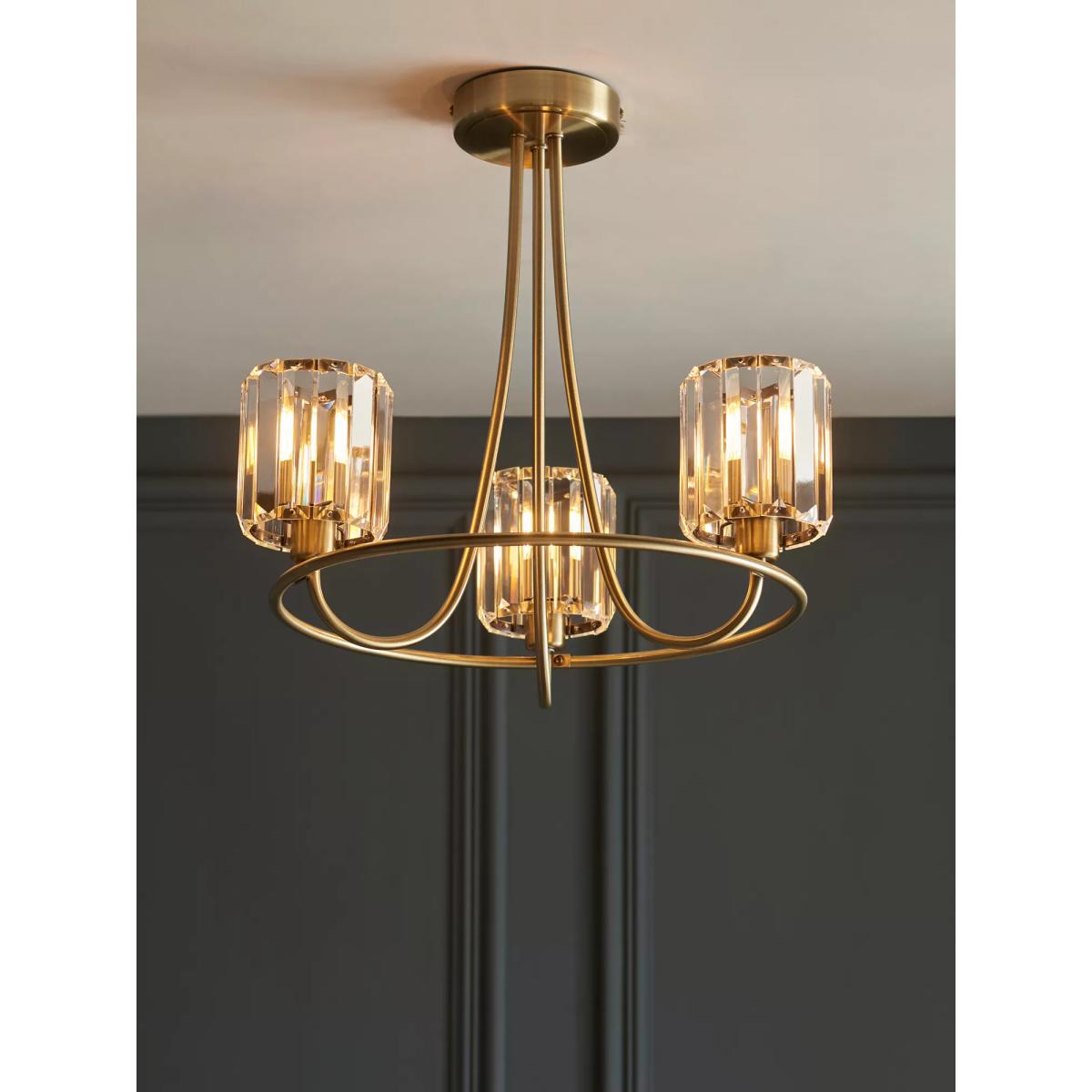 Bay Lighting Berenice 3 Arm Semi Flush Ceiling Light, Brass