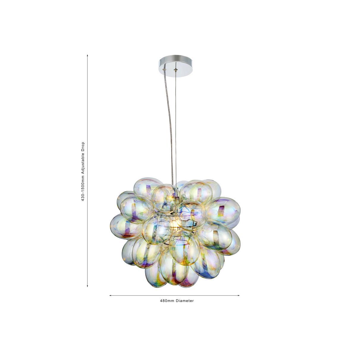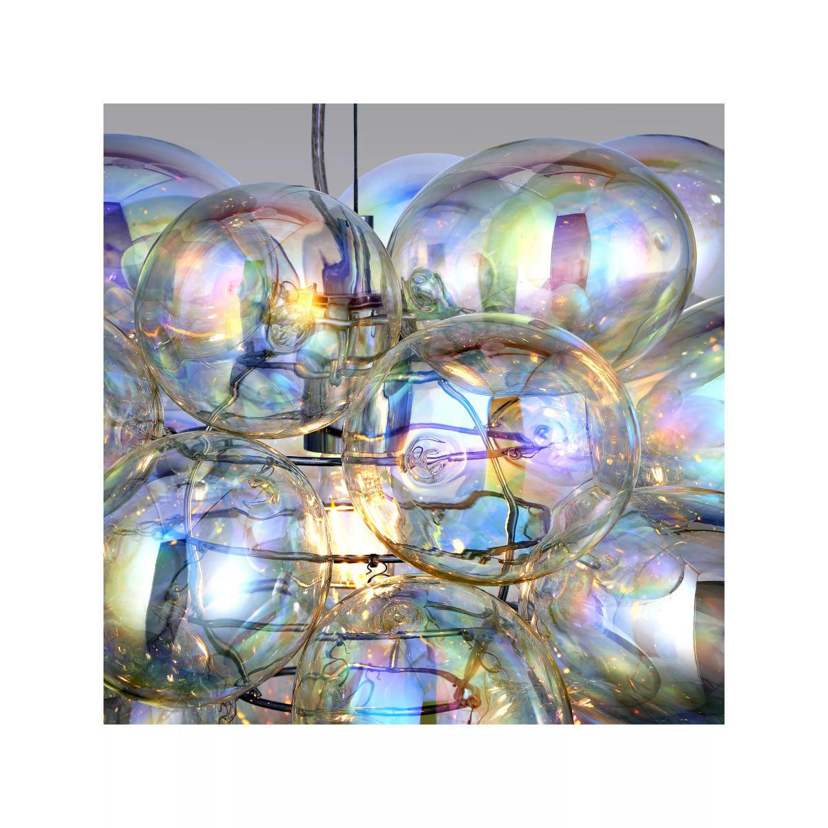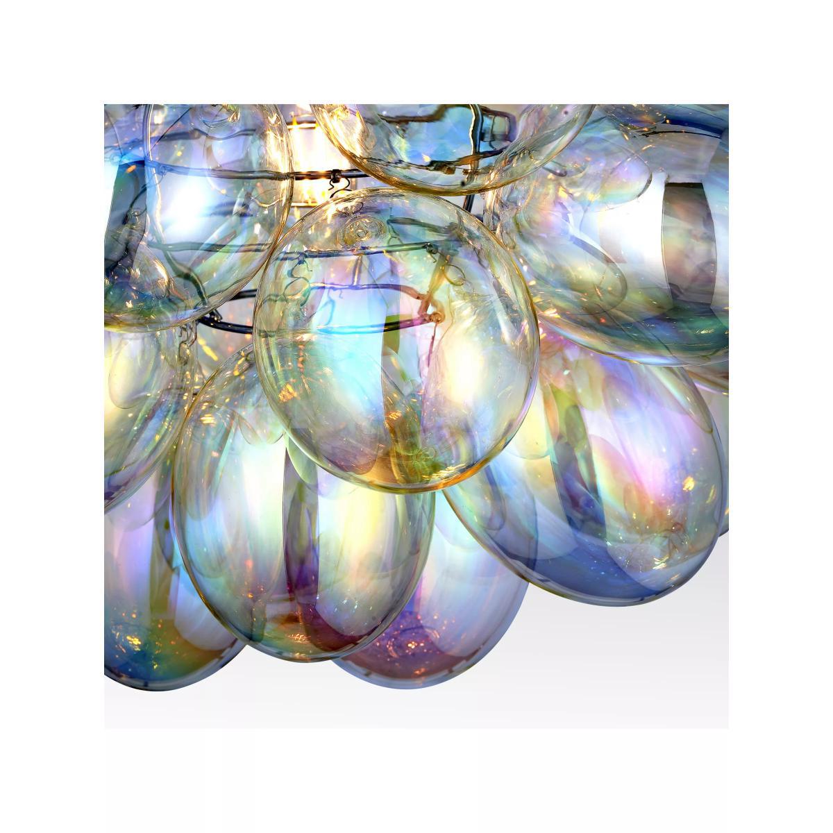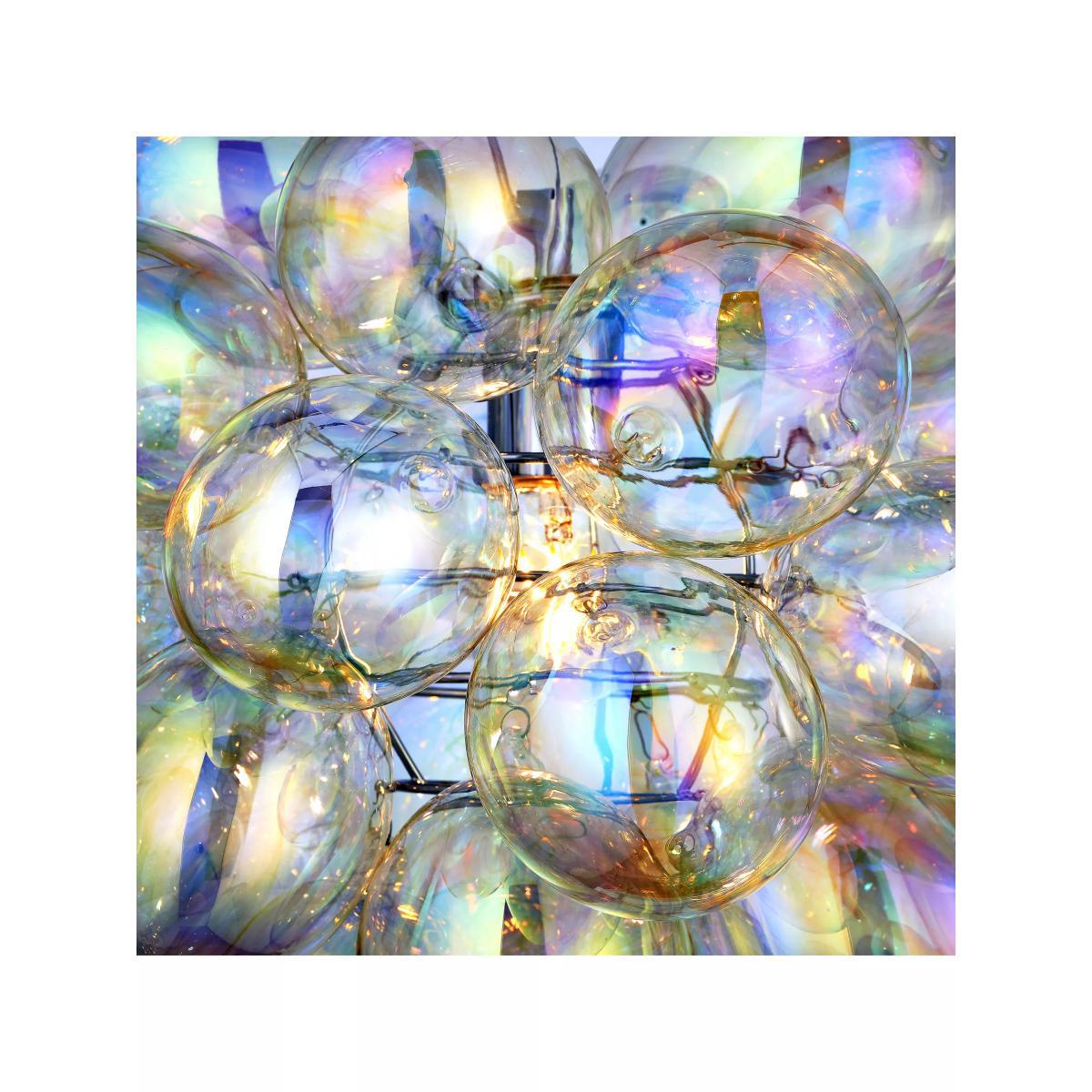 Made from a constellation of iridescent glass shades, this ceiling light will draw the eye in your home. It offers a warm glow of light with subtle shades of colour visible when illuminated. It's suspended from a height-adjustable wire cable and clear flex, and it's complemented with chrome-plated metal.