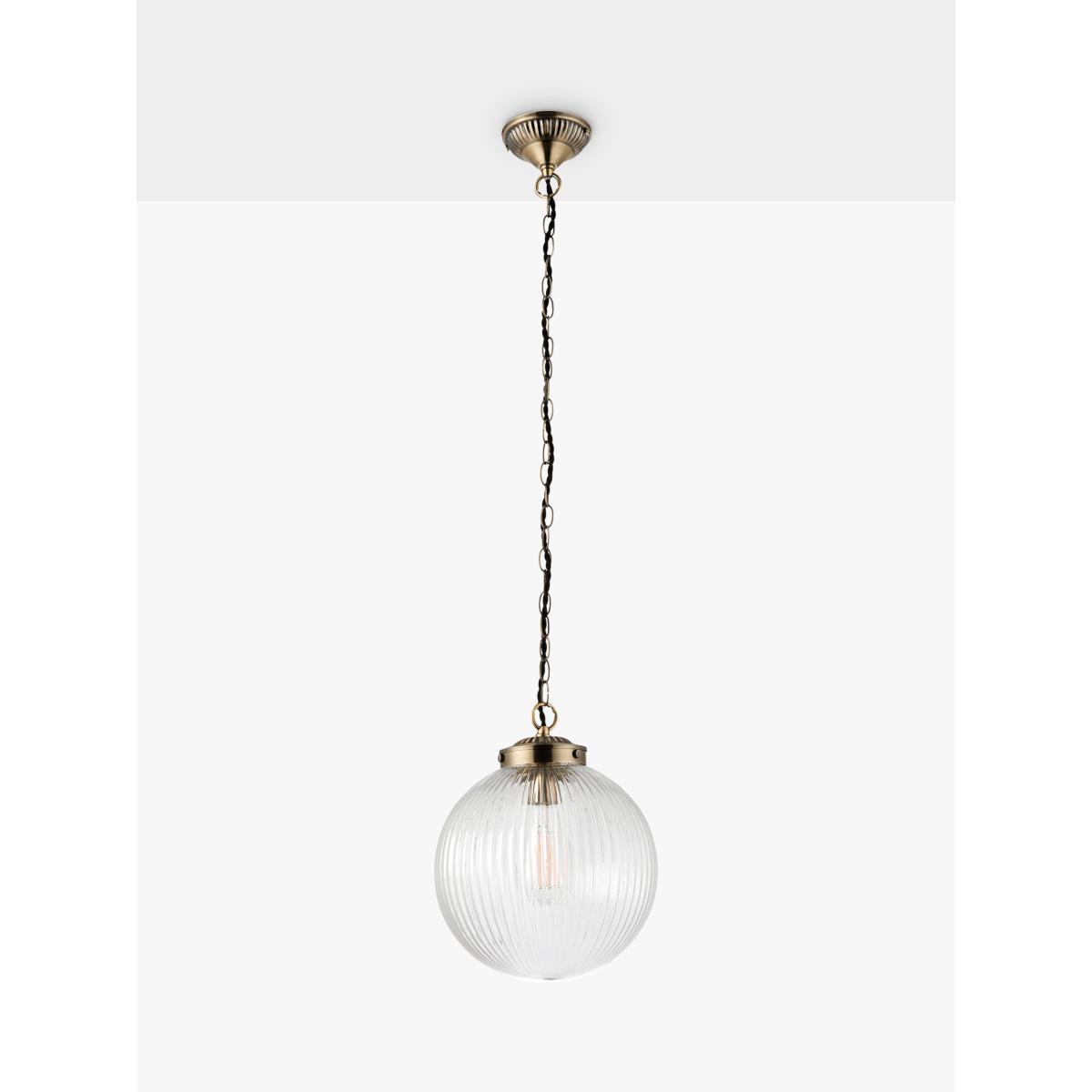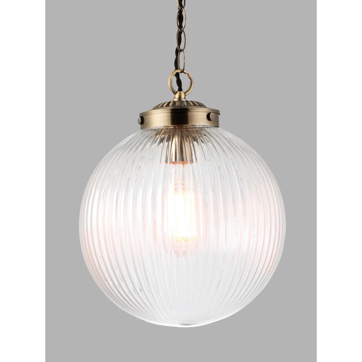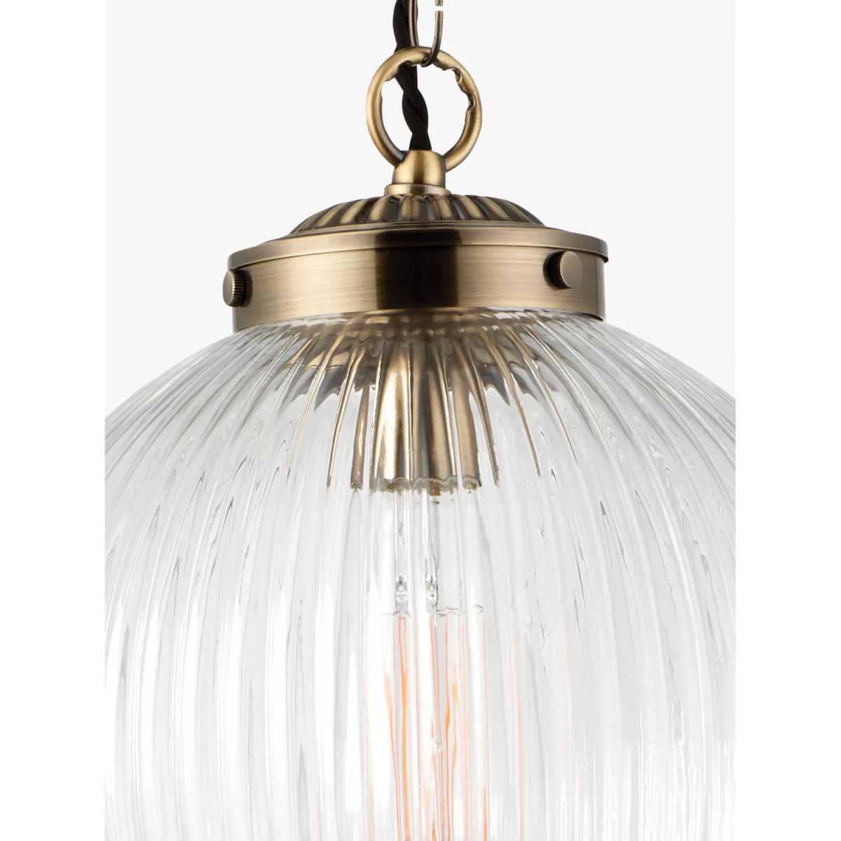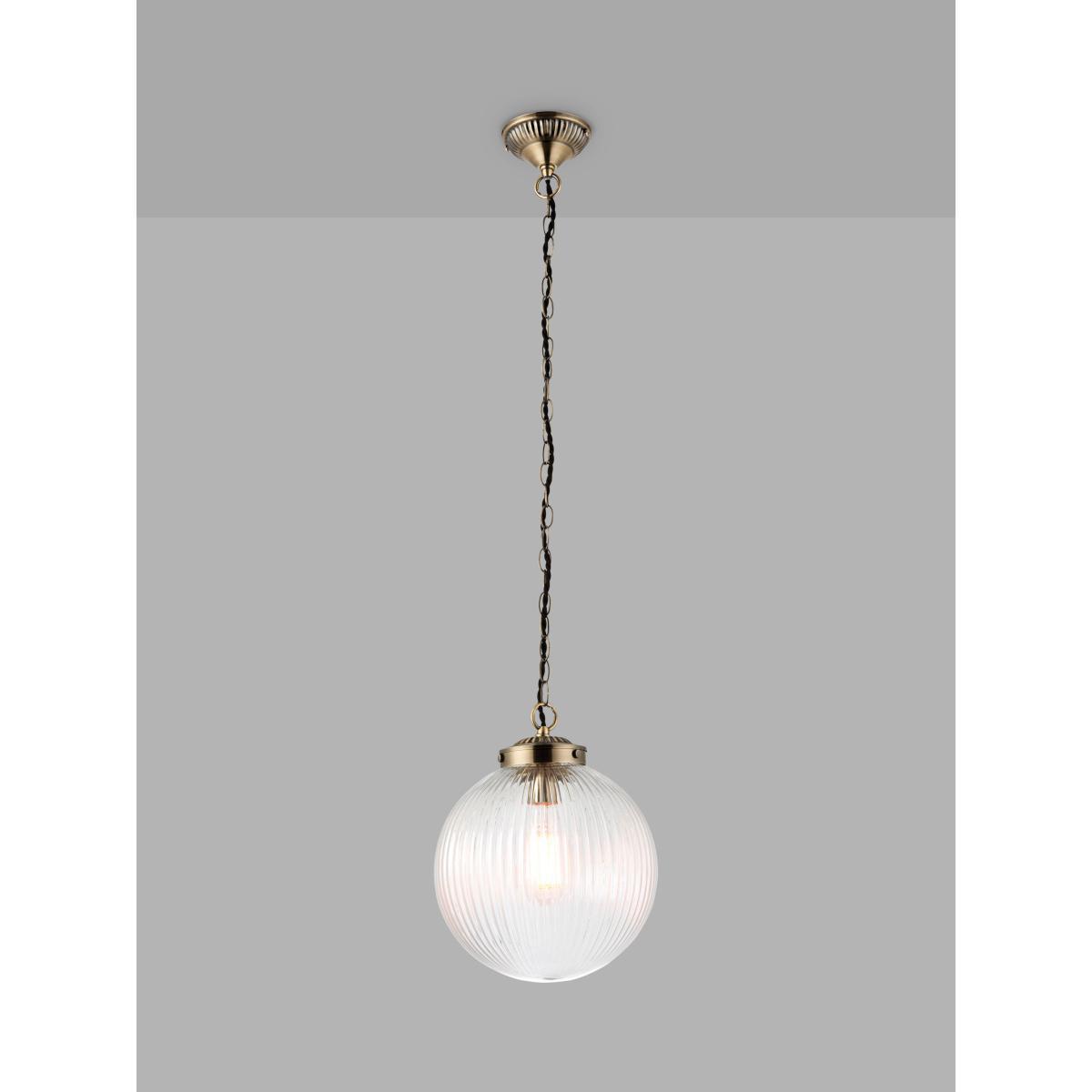With a smart, ribbed glass shade suspended from a height-adjustable metal chain, this ceiling light is easy to position in your home. The antique-brass finished detail gives it a rustic look, but it would work equally well in industrial-inspired settings.