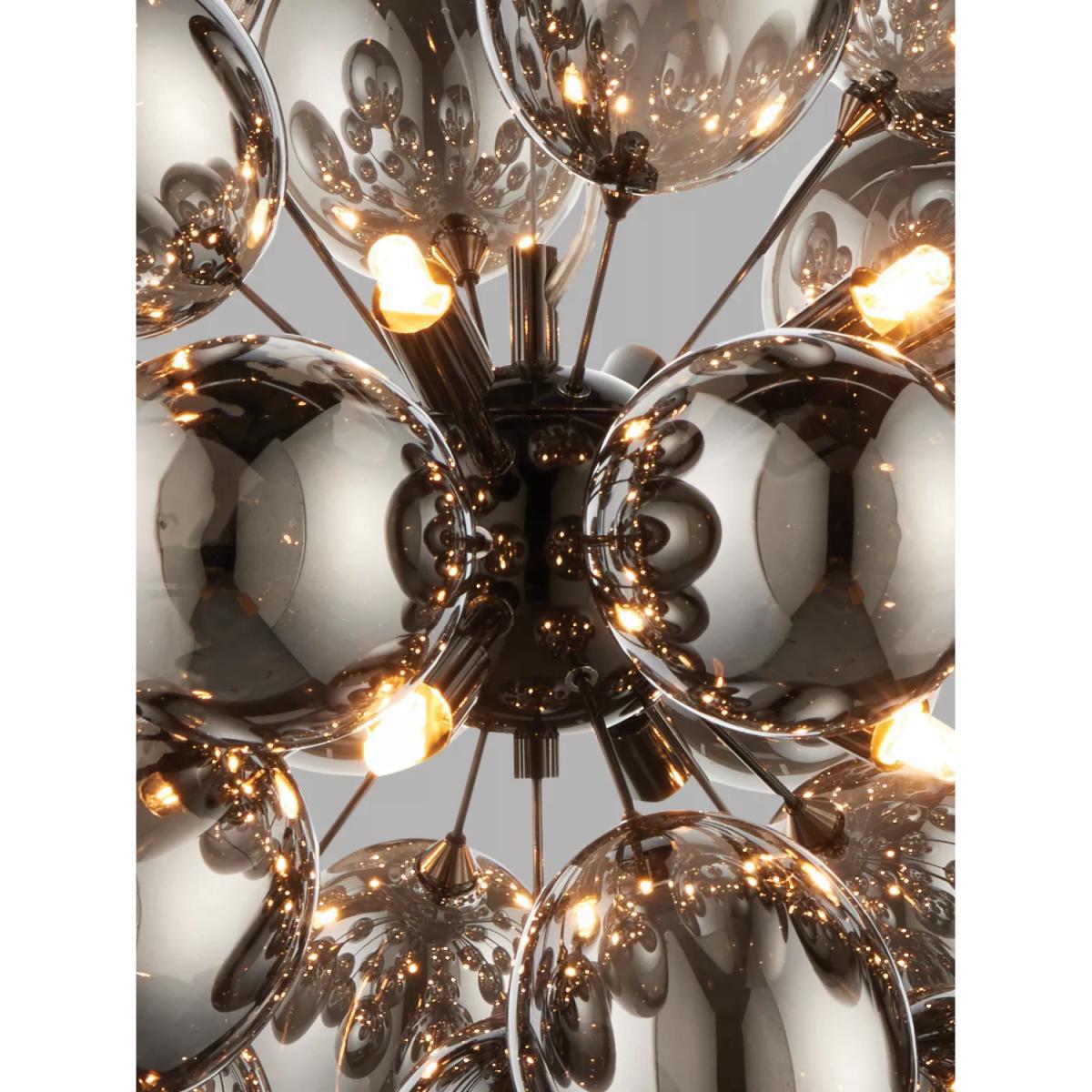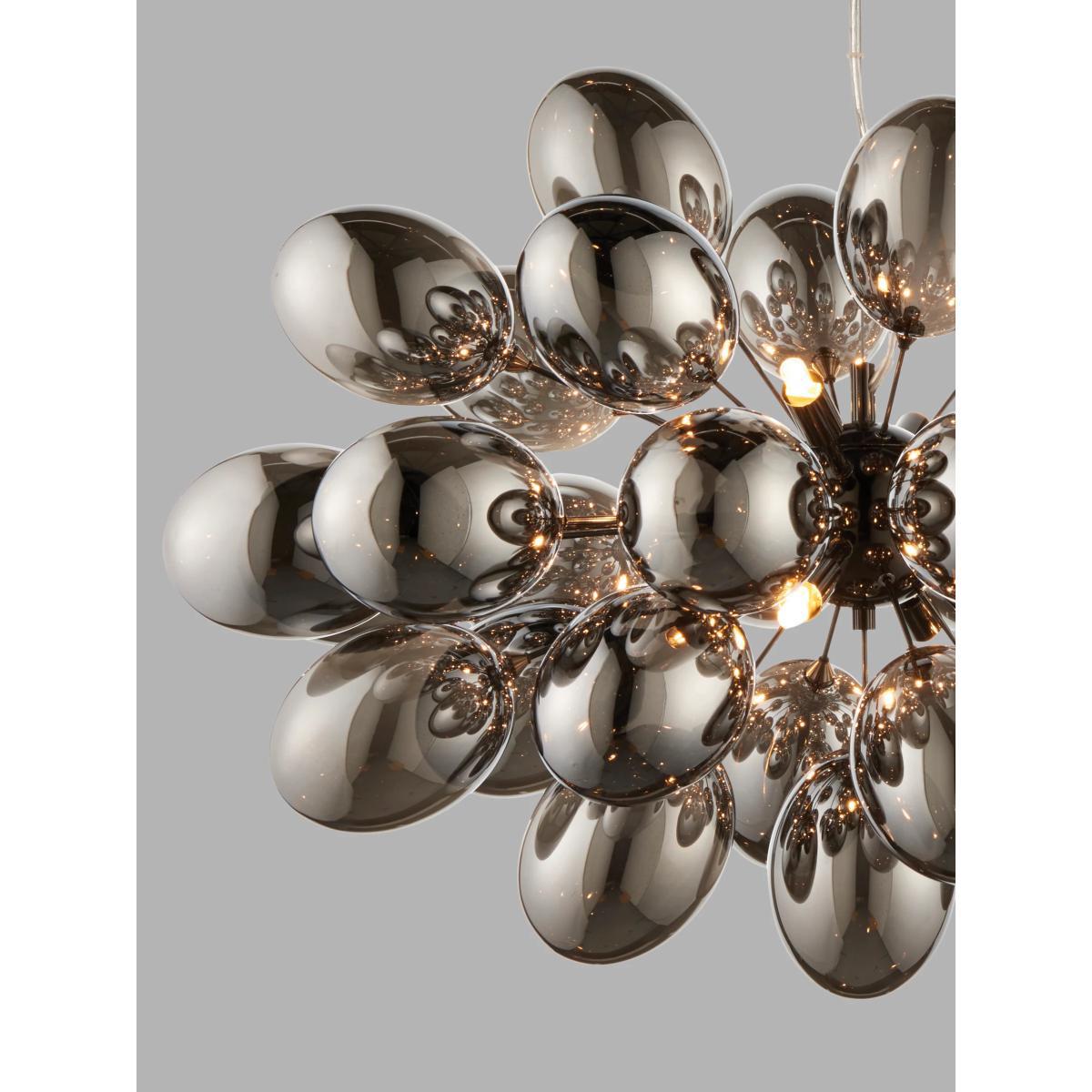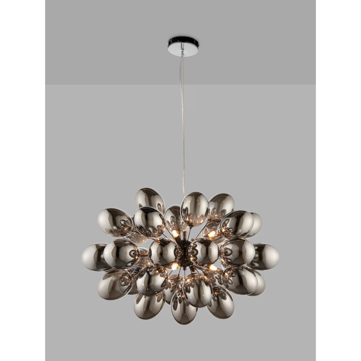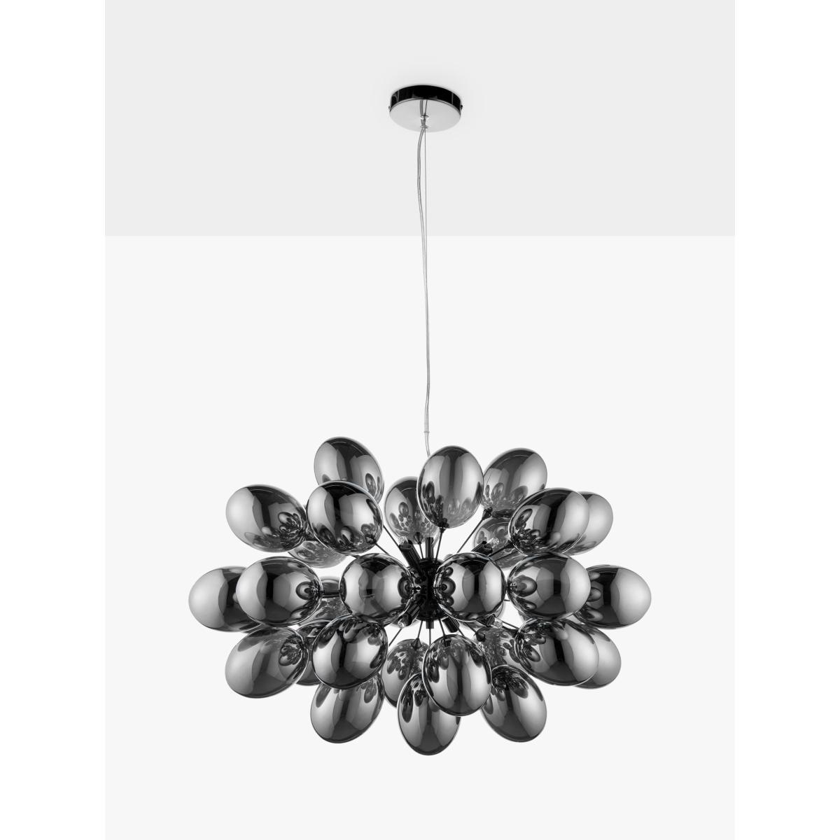This large ceiling light combines electro-plated dark chrome glass shades with a black chrome plated finish to achieve a sophisticated, designer look. Distinctive, modern and suspended from a height-adjustable cable, it will cast an ambient glow of light around your space.