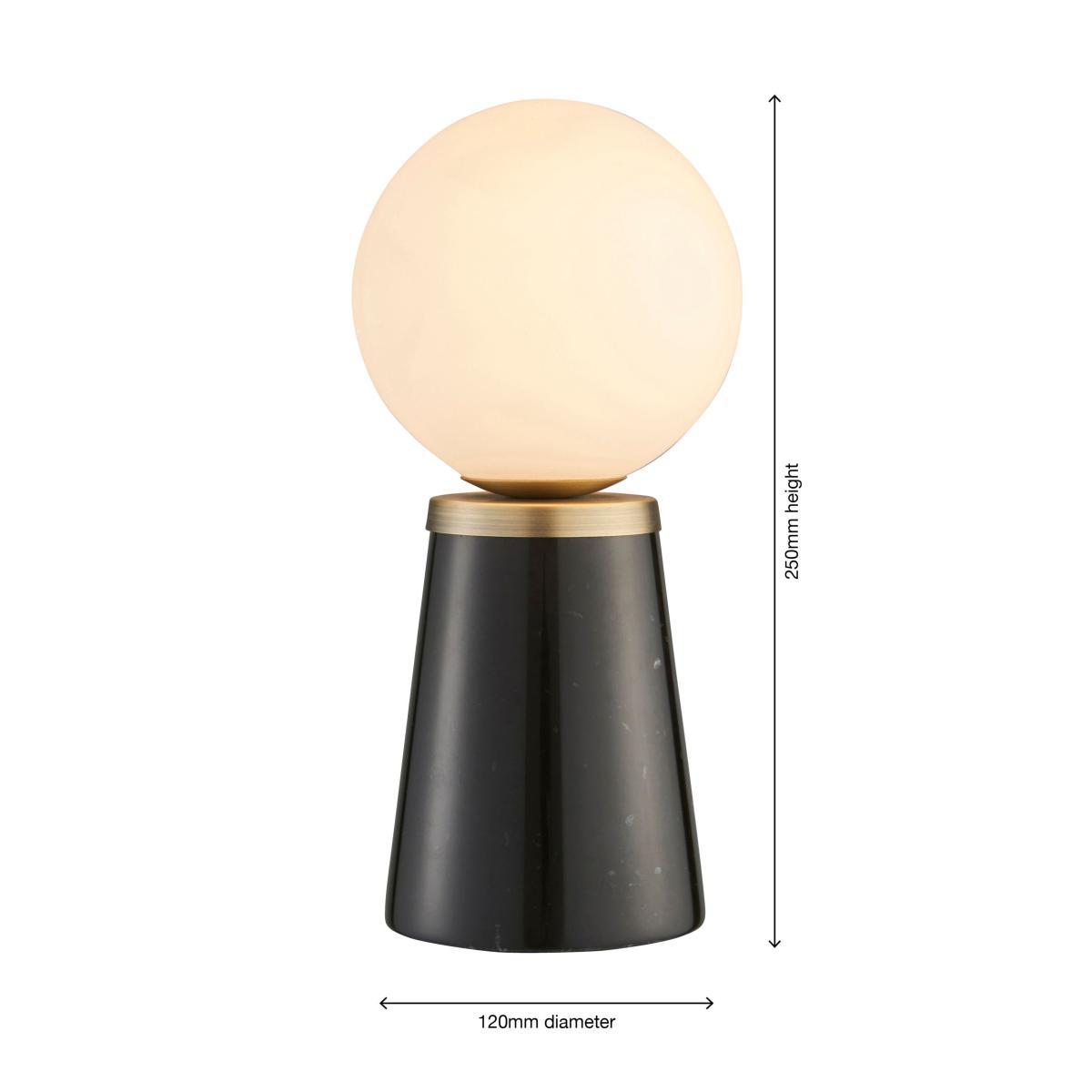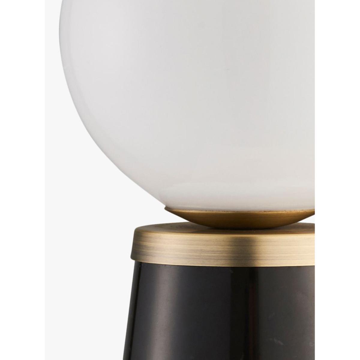 A compact table lamp that packs a Mid-Century inspired punch. The cone-shaped base is made from on-trend marble which works perfectly with the blown-glass shade. It's accented with metal detail in an antique brass finish. One LED bulb is required.