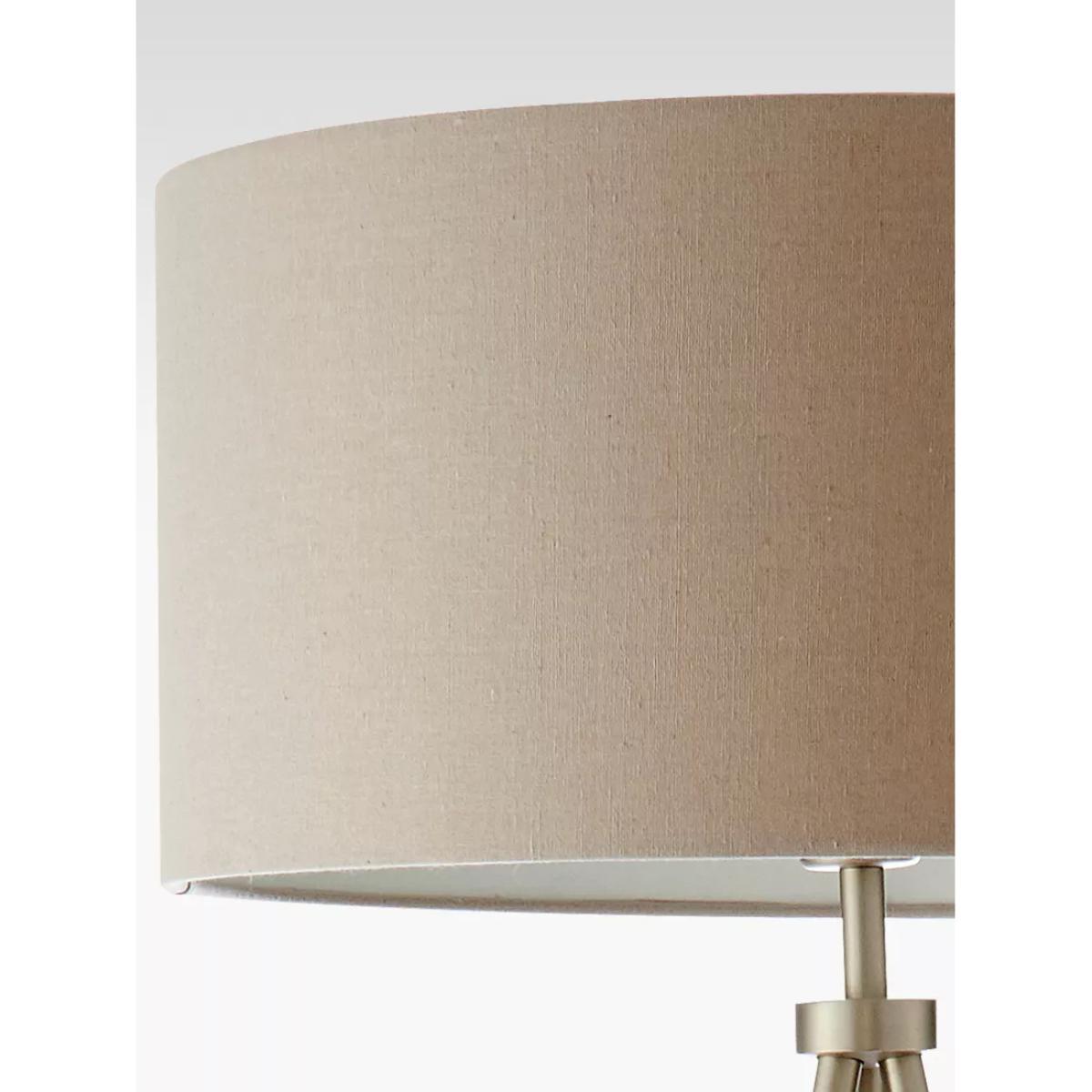 This stylish floor lamp has a minimalist, tripod stand, made from sturdy steel. It's paired with a linen-effect lampshade that enhances a warm glow of light.