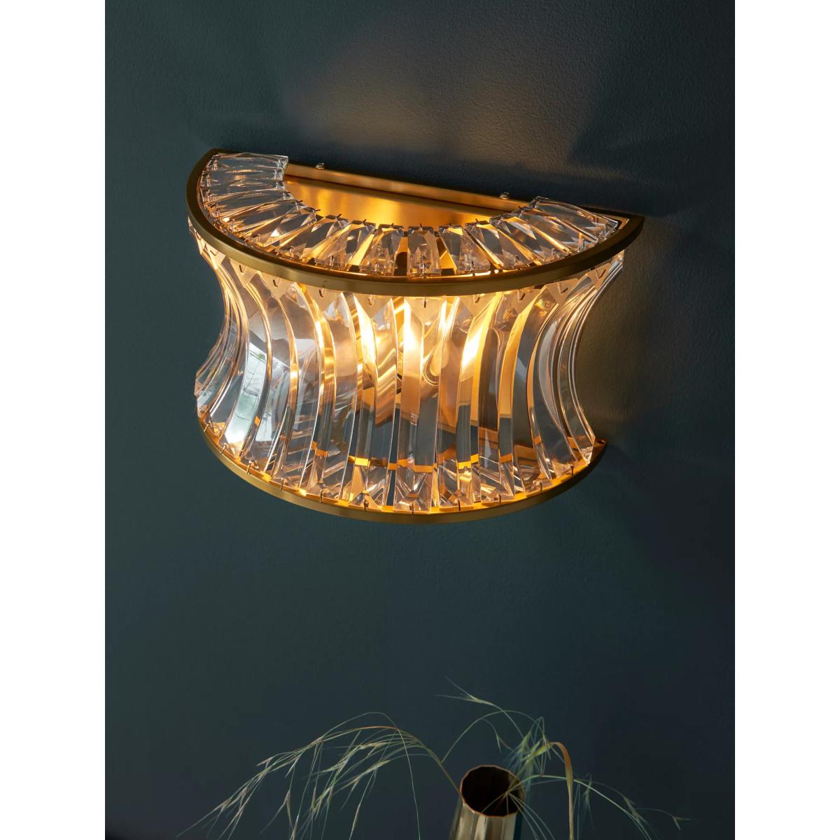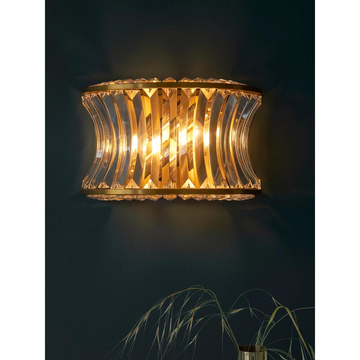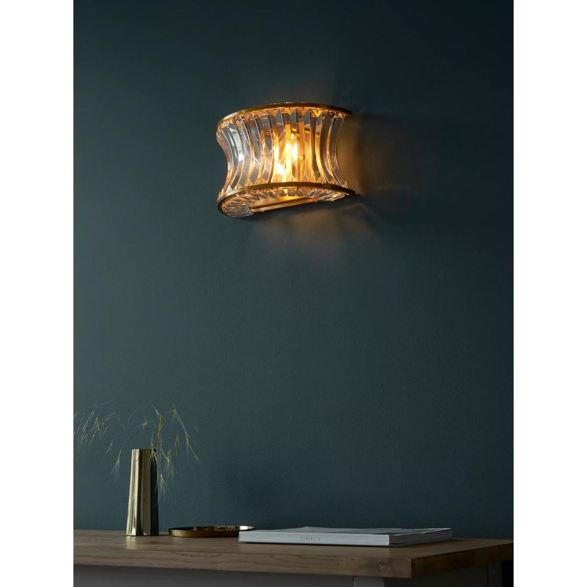 Cast light across your walls with this elegant wall light, made with decorative clear faceted glass and warm brass metalwork. The quality of this light gives a distinguished look to your home.