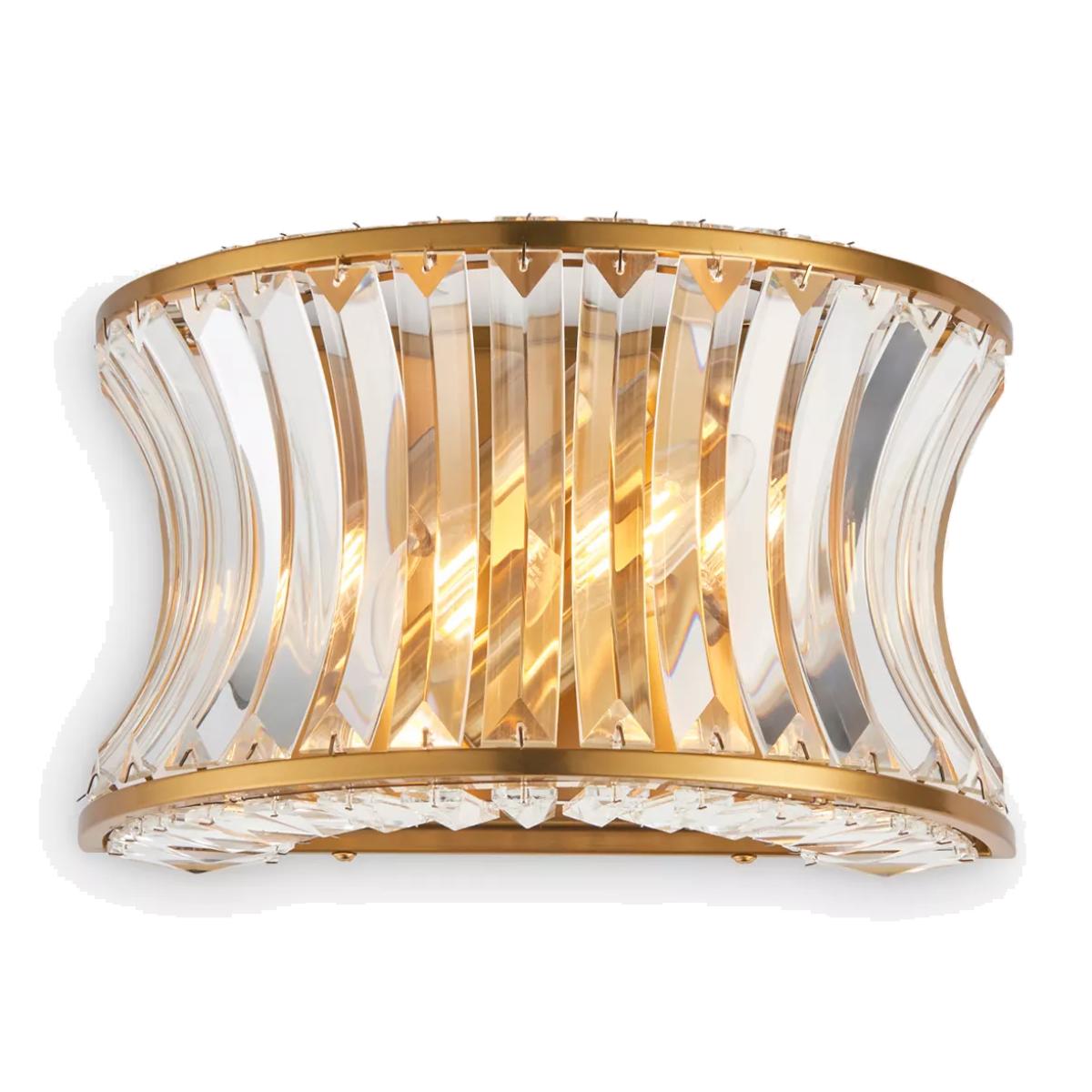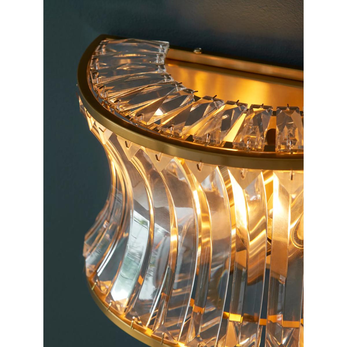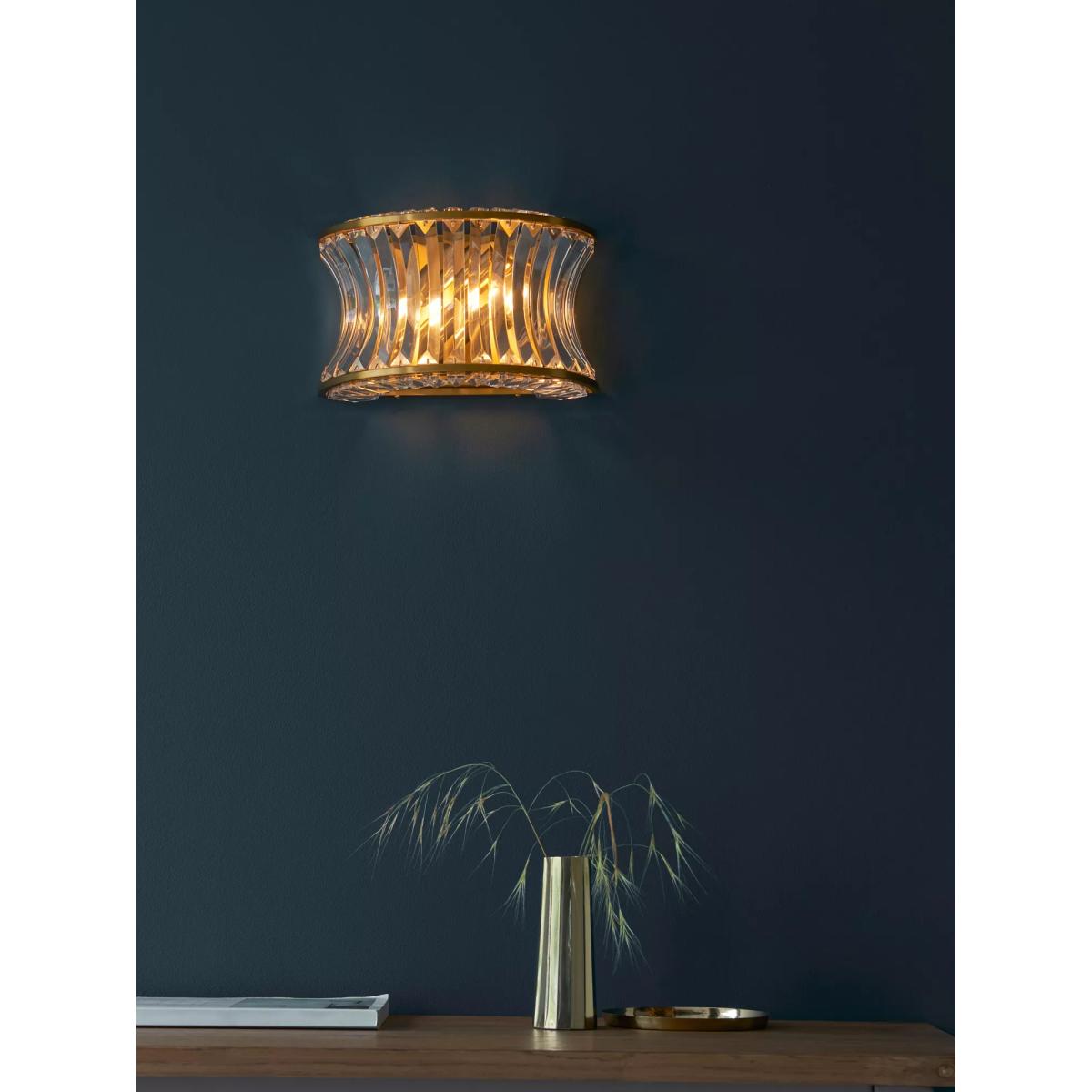 Cast light across your walls with this elegant wall light, made with decorative clear faceted glass and warm brass metalwork. The quality of this light gives a distinguished look to your home.