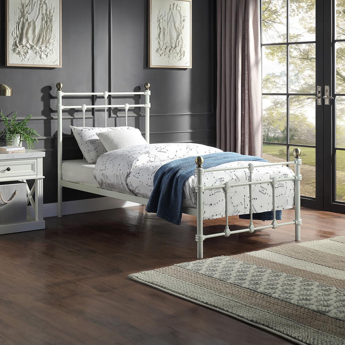 The classic Bayford is a traditional style metal bed frame with beautiful features such as brushed antiqued brass knobs and casting shell style detail. This bed frame has solid metal slats and a sturdy base for your comfort. A timeless bed frame that will enhance any bedroom and will suit a wide range of interior decor schemes. Available in Black, White or Hand-brushed Antique Brass, as a Single, Small Double, Double or King Size.