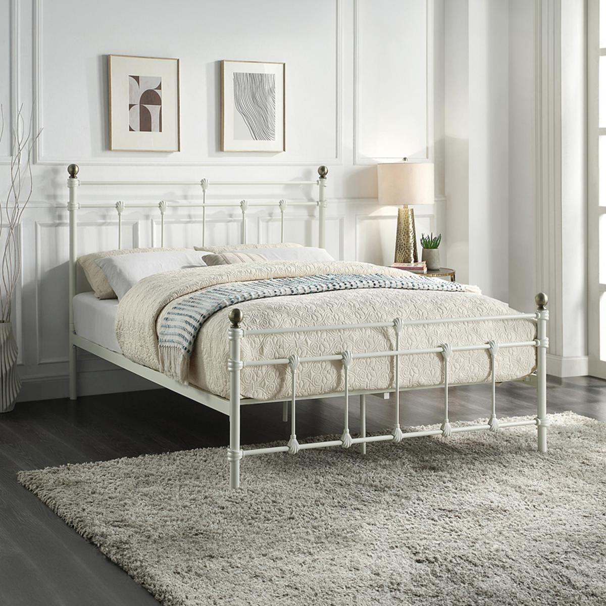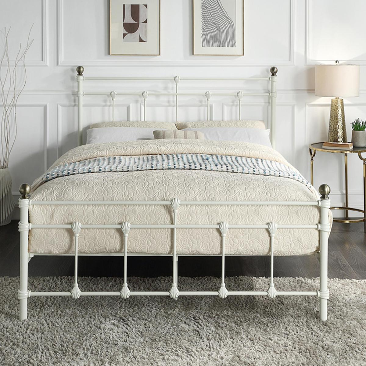 The classic Bayford is a traditional style metal bed frame with beautiful features such as brushed antiqued brass knobs and casting shell style detail. This bed frame has solid metal slats and a sturdy base for your comfort. A timeless bed frame that will enhance any bedroom and will suit a wide range of interior decor schemes. Available in Black, White or Hand-brushed Antique Brass, as a Single, Small Double, Double or King Size.