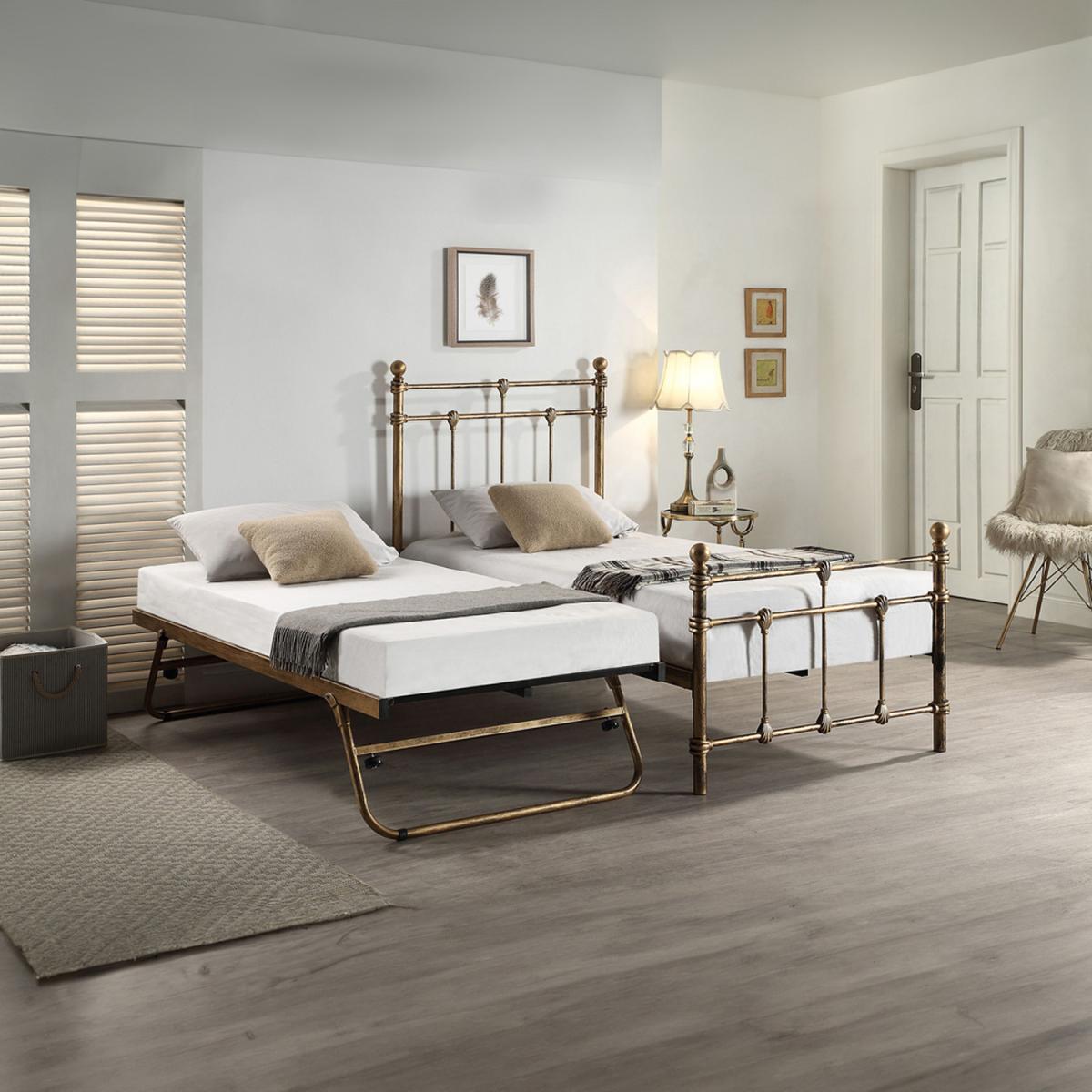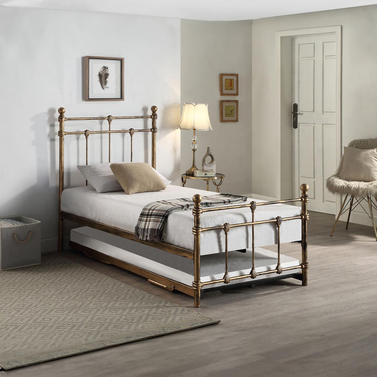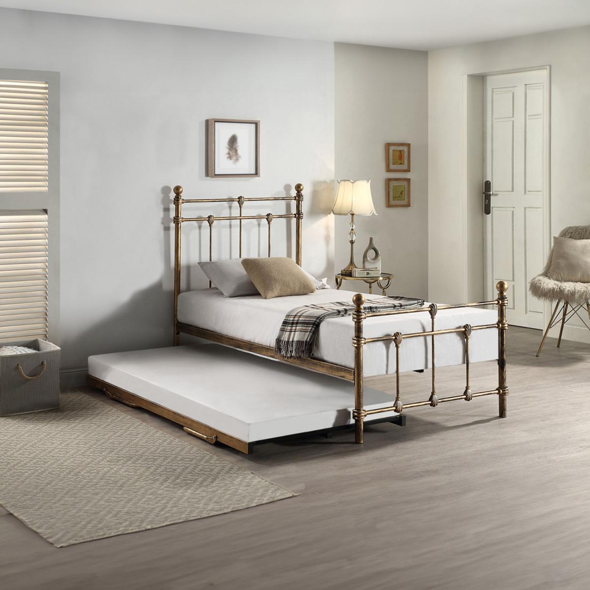 Bayford Traditional Victorian Single Metal Bed Frame with Guest Trundle - Antique Brass