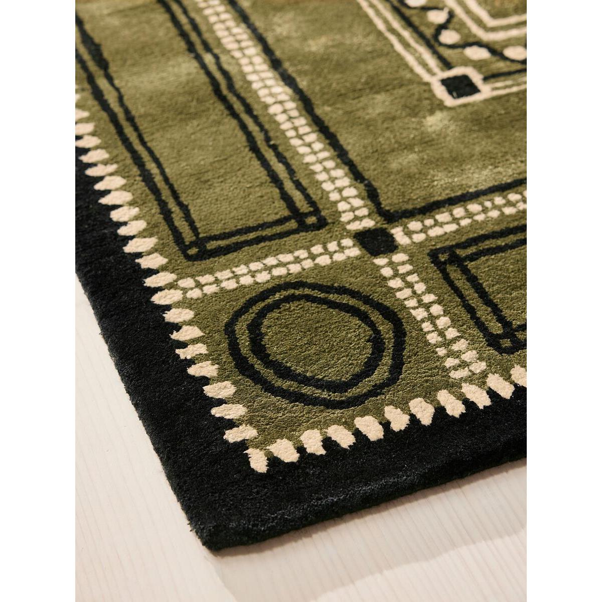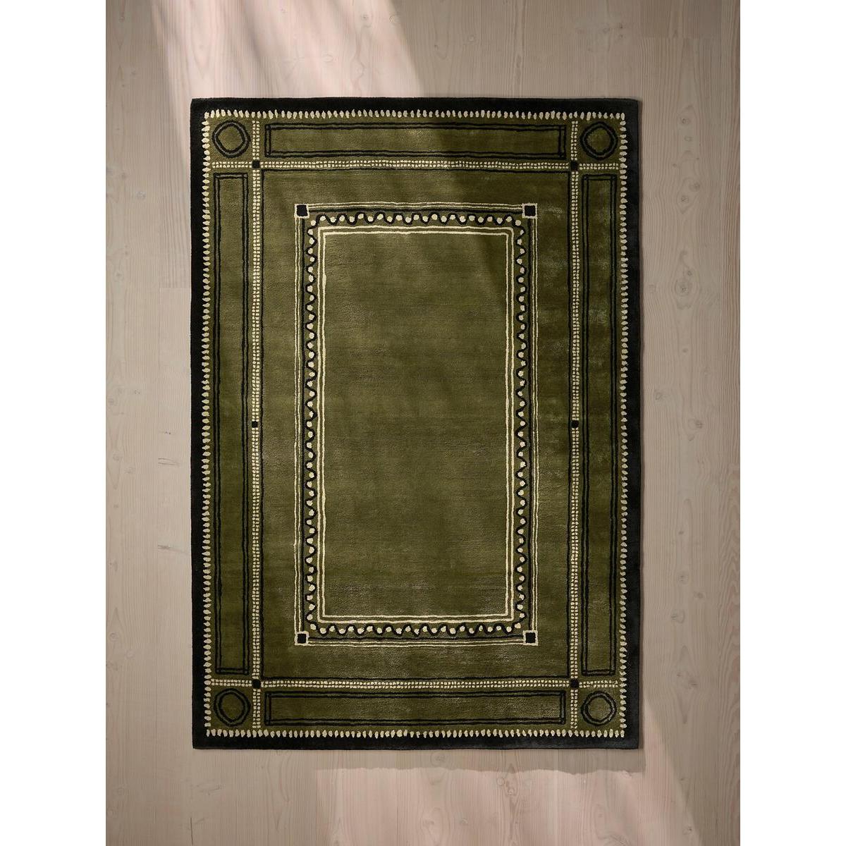 The decorative border details of our Bayonne rug is inspired by French rugs from the 1920s Art Deco movement. Hand-tufted in India, this particular design has been crafted using natural fibres. These give a subtle silk-like sheen and reflect the light, adding depth to your interiors, as well as a supreme softness underfoot. Complement the sage colouring with wood furniture pieces in the living room, hallway or dining room. Hand-tufted rug Decorative cream and black border detail Inspired by French rugs from the 1920s Designed in-house Handcrafted from natural fibres in India Subtle sheen finish Sage colour Available in a range of sizes Inspired by Soho House Berlin