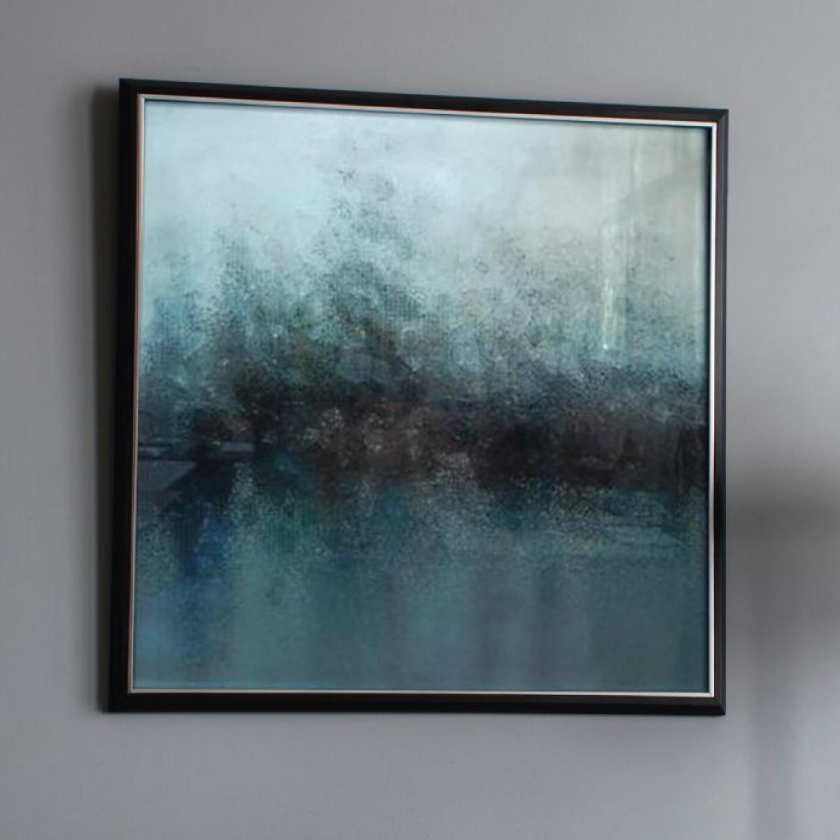 Large square abstract art with beautiful tonal colours and a two-tone frame which complements the art perfectly. Orientation: Square. Fixing Type: D-Ring. Framed:Yes. Colour: Blue.