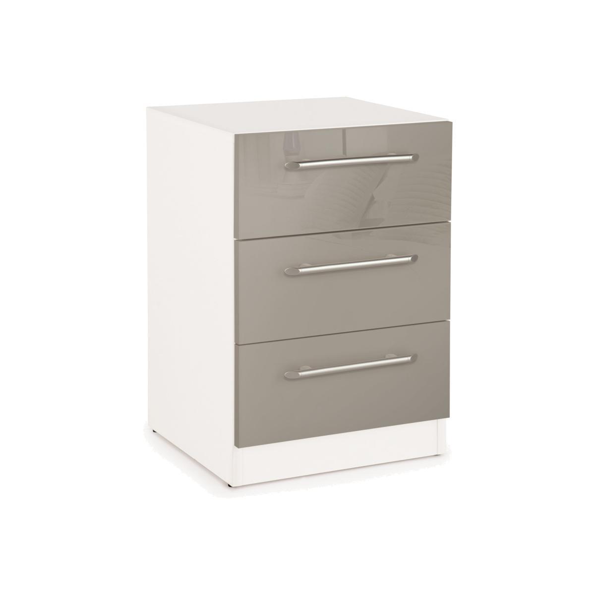 The Bayswater Bedside cabinet features 3 equally sized drawers with metal runners for easy and smooth movement. The crisp and modern Bayswater range from Harmony is certain to brighten up any bedroom with its contemporary features. The drawers have metal effect plastic handles and storage space that sit on heavy duty metal runners so will last over a number of years. Please note, unfortunately we cannot deliver this item to the Channel Islands.