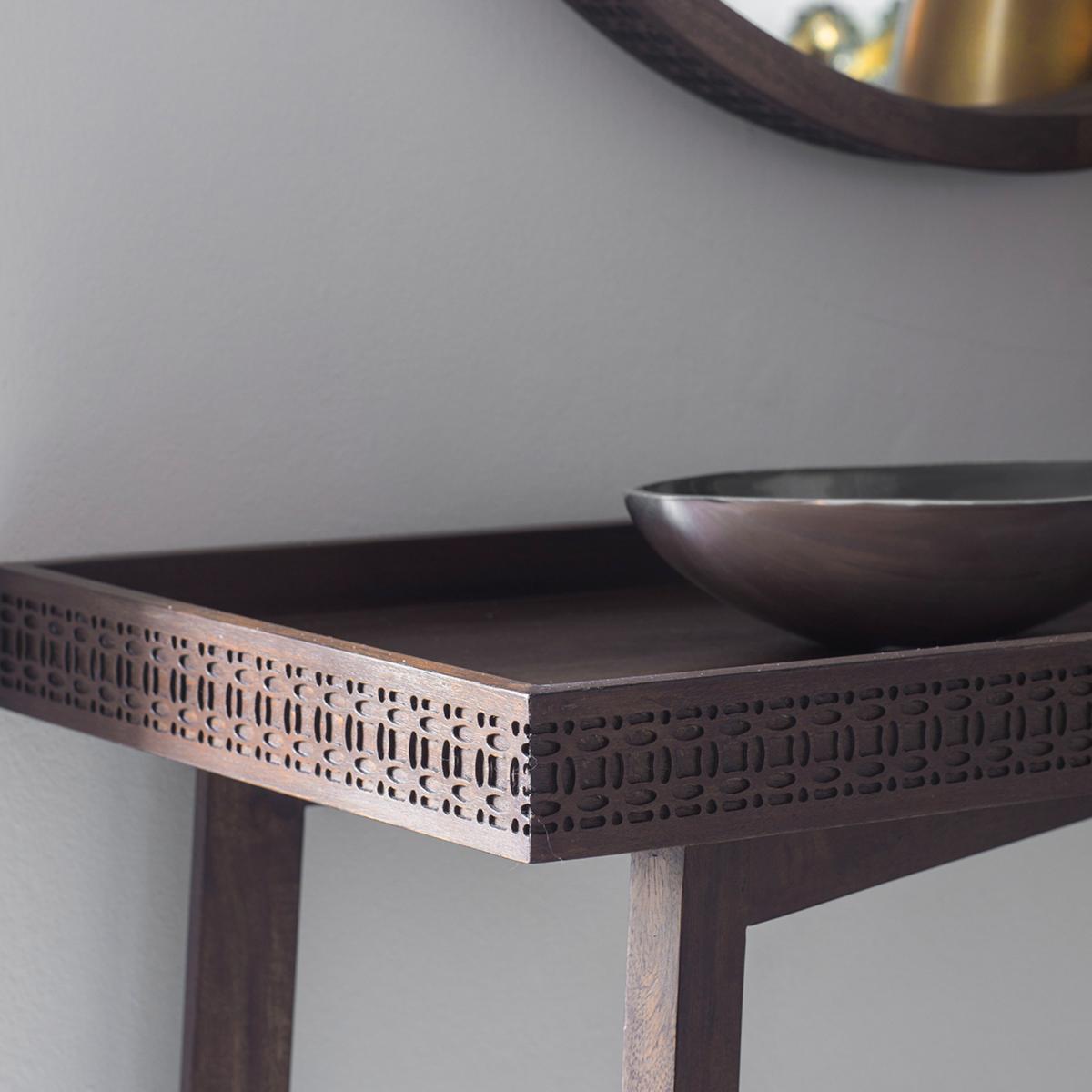 I love this little console for its versatile, understated style. The brown finish adds warmth and depth, making it easy to incorporate into various interiors-from contemporary to more traditional schemes. It works particularly well in entryways or as an accent piece in living rooms, providing both surface space and visual interest. For styling, I recommend keeping the top surface uncluttered with a decorative tray, a statement bowl, or a vase with fresh greenery to keep it looking polished. You could also use it to display favourite books or small art pieces, making it both functional and attractive without overwhelming the space.