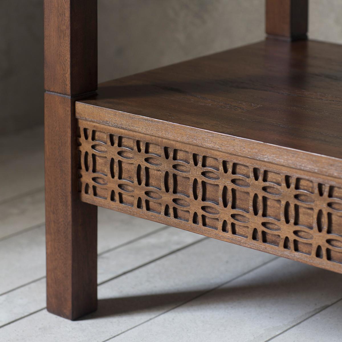 * Inlaid pattern which stands out* The wardrobe features a patterned frieze of blind fret work around the bottom shelf, made from solid mango wood* Can be mixed with modern or classic pieces in an eclectic living space* It has a stunning brown finish* Offering a global traveller look that has an intricate design detail* Other matching items available The Baytown Retreat Open Wardrobe, showcasing a captivating inlaid pattern and a patterned frieze of blind fretwork made from solid mango wood, effortlessly integrates into eclectic living spaces. With a stunning brown finish, this open wardrobe brings a global traveller look with its intricate design details, complemented by other matching items for a cohesive bedroom ensemble.
