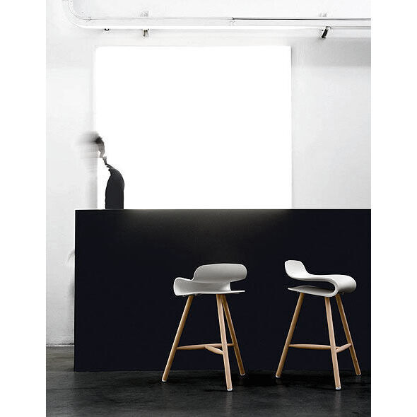 BCN Wood Bar stool - H 66 cm - Plastic & wood legs by Kristalia White/Natural wood