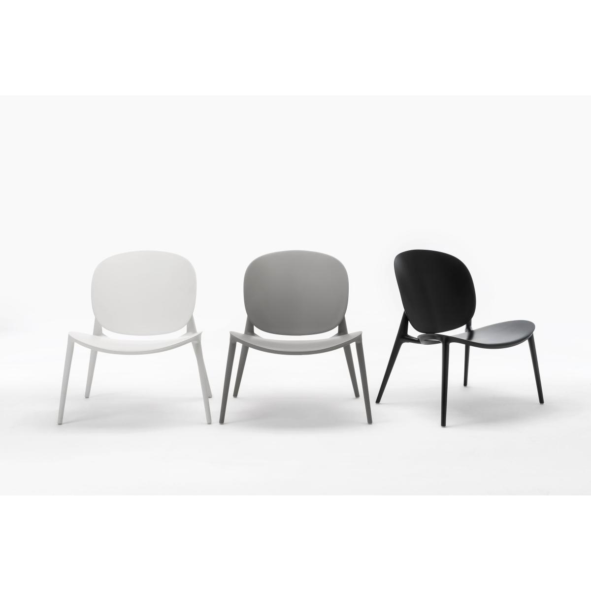 Ludovica & Roberto Palomba, a legendary couple in Italian design, create products that go way beyond trends. The Be Bop armchair was born from their love of travel. Be Bop is a delicate armchair that mixes different languages: that of carved African stools and the curved forms of Scandinavian design from the 60s. The result is a piece of furniture that’s both clever and wild, like Be Bop, a jazz style characterised by very fast tempos and innovative harmonic components! A true technological feat, this low armchair uses an injection moulding process that creates astonishing curves. The designers wanted to give their armchair a tribal look, marked by simple, archetypal forms: an oversized medallion backrest, a wide curved seat. The organic, round, generous lines are extremely welcoming. Large yet airy, the Be Bop armchair fits into your decor without visual overload. Welcoming and ergonomic, the extra wide backrest ensures optimal comfort by perfectly supporting your back.