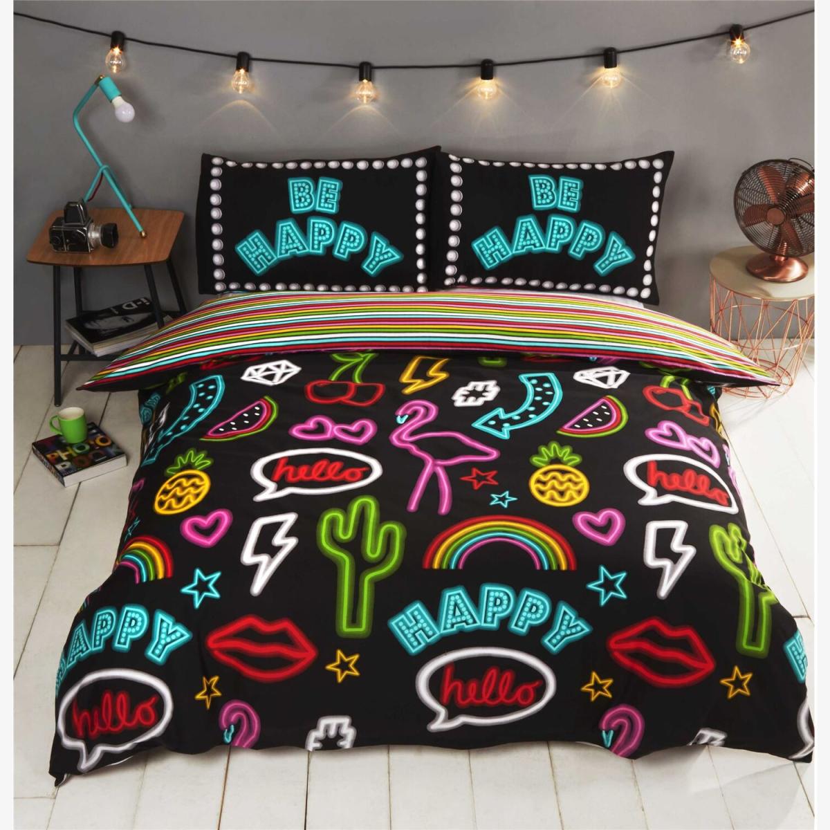 Be Happy Neon Lights Duvet Cover Set - Black / Single