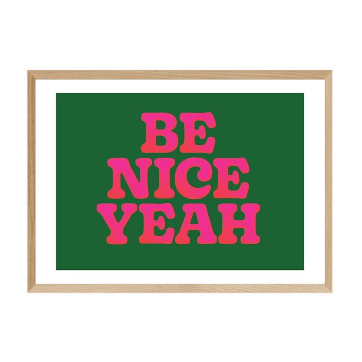Be Nice Yeah, Typographic Print Colour: Oak, Size: A3