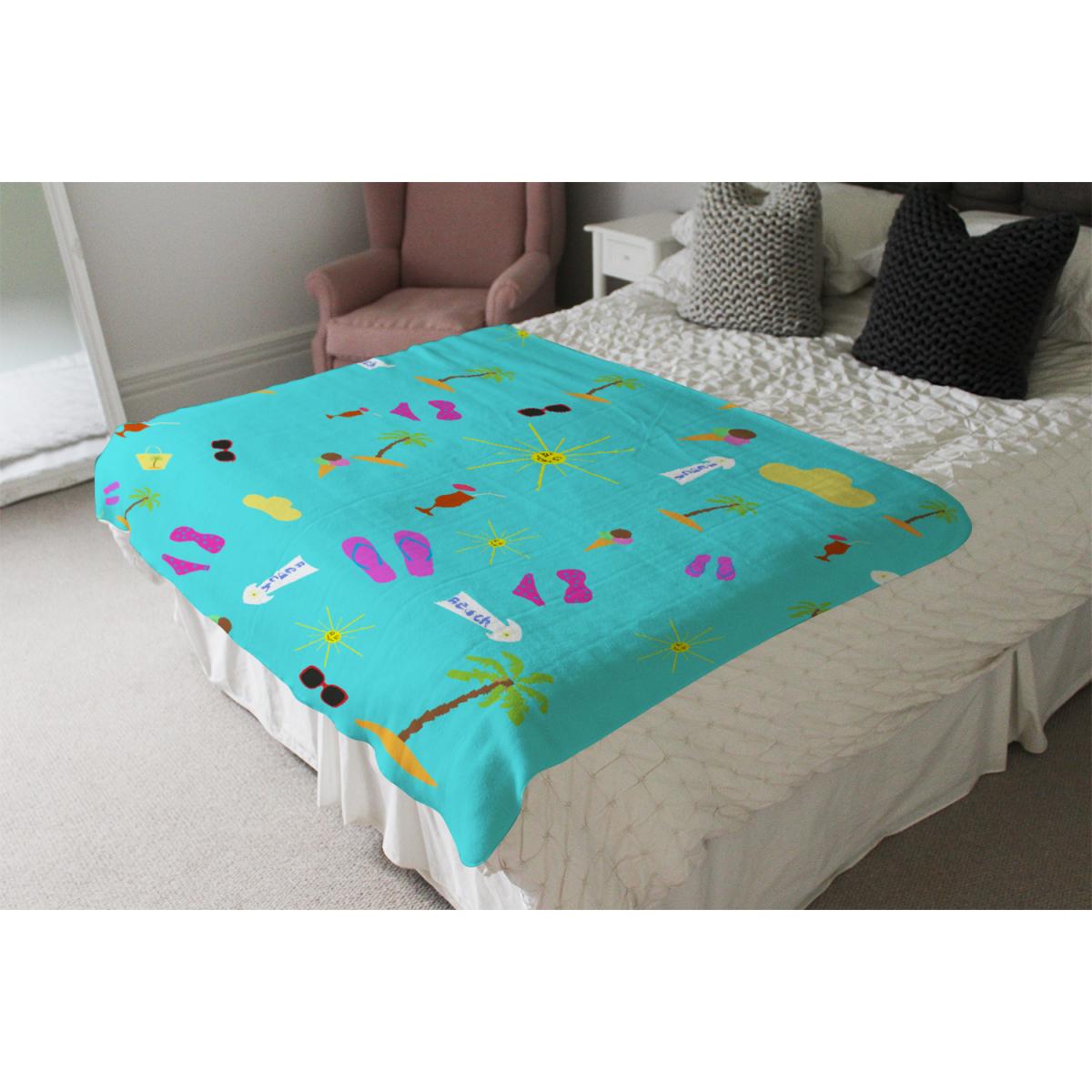 I love this blue beach cartoon blanket for its playful yet modern vibe, making it an ideal accent in casual, coastal, or kids' spaces. Its vibrant colours and fun pattern add a lively pop of colour that can easily lift a neutral sofa or bedding ensemble. To style it effectively, drape it over a sofa arm for a relaxed look or fold it neatly at the foot of a bed to introduce colour without overwhelming the space. It works particularly well in relaxed interiors, beach houses, or family rooms where practicality and colour are key. For added impact, team it with simple, solid-coloured cushions or throws to let the pattern stand out.