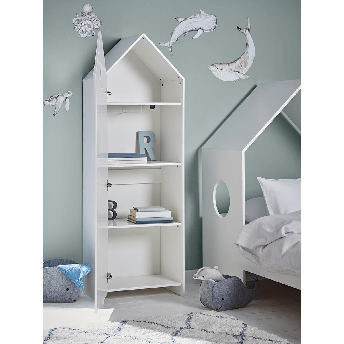 Add a splash of seaside-inspired fun to your world with our Beach House Bookcase. Shaped like a traditional British beach hut, complete with slatted door and porthole-style window, and with a smooth, white lacquered finish, this unit will add a splash of nautical charm to any room, whether it’s for adults, children, or both. Our wall colours are. Swedish Blue. And. Flaxen.
