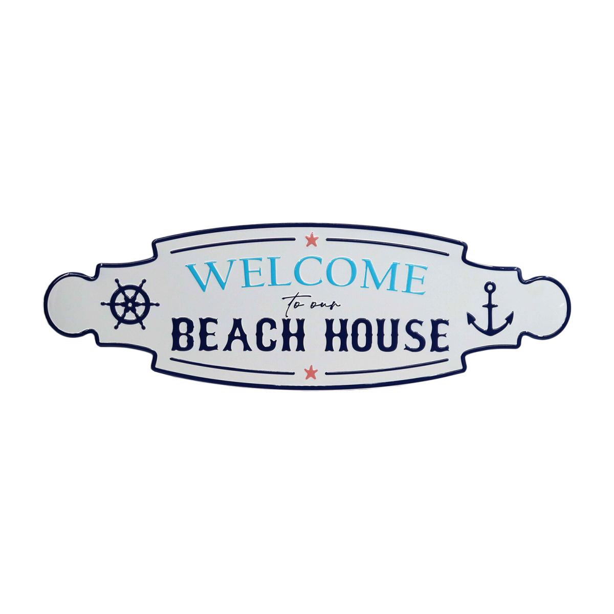 Beach House Embossed Metal Plaque - White