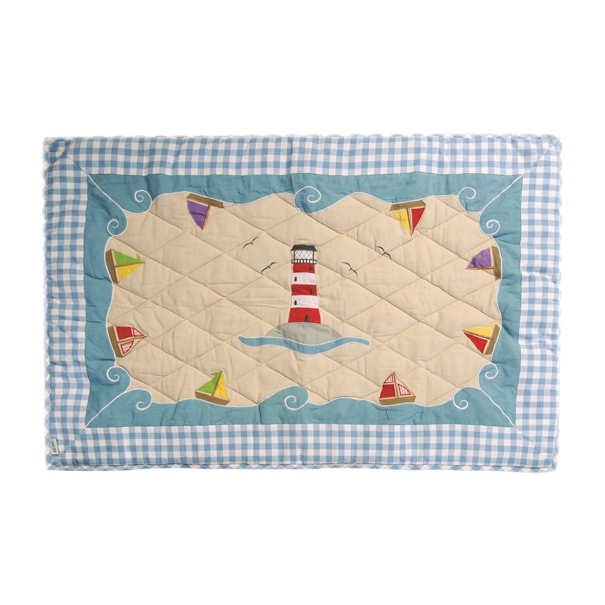 I love this little quilt for adding a cosy, coastal vibe to a child's bedroom or nursery. Its beach-themed design and soft colour palette make it a versatile piece that pairs well with neutral or pastel décors. To style it effectively, try layering it over a neutral or light-coloured rug in a bedroom or play area to give a charming seaside touch. It’s also great as a standalone feature on a bed or cot, especially when you want a practical yet decorative accent. Keep in mind that its quilted texture adds a tactile element that children will love, making it both a functional and aesthetic addition to spaces that aim for a relaxed, maritime feel.