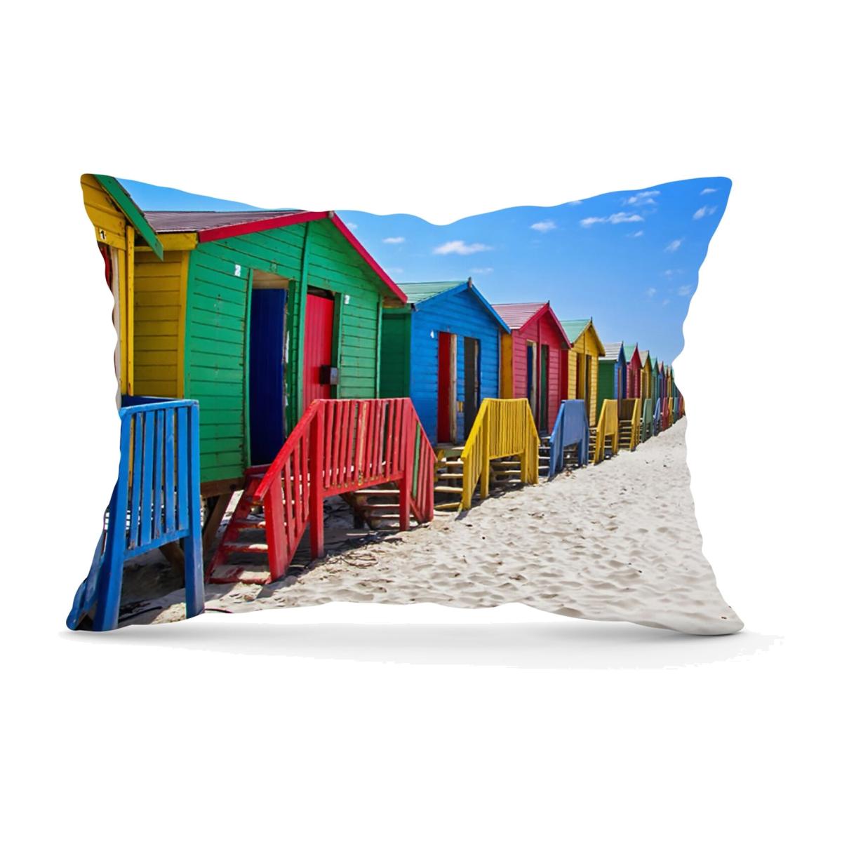 Beach Huts At Muizenberg Beach, Cape Town Cushion - Blue / 23cm