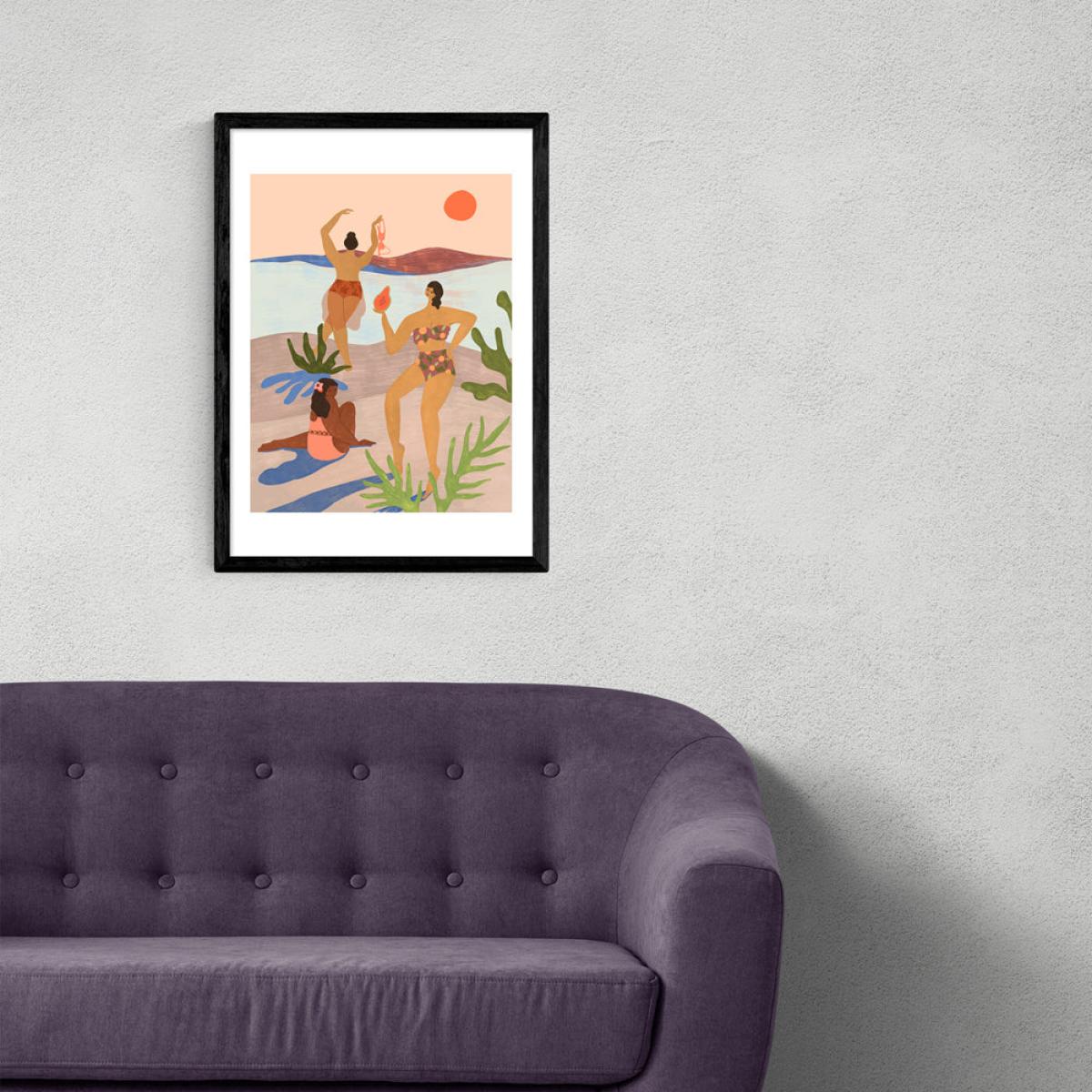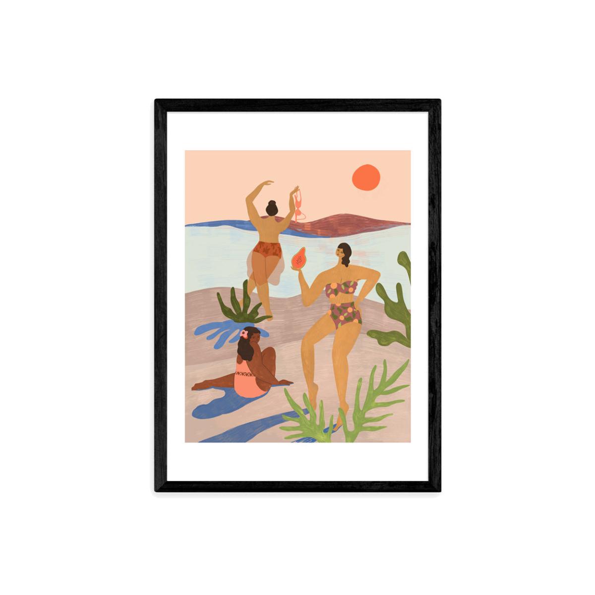 Make time for the girls with this beautiful illustrative print of a summery beach day by Arty Guava. Additional Information: Black Obeche Wood Frame A3 Sized Print Giclee printing process lasting up to 70 years from fading 210gsm acid free archival paper with a digital white border For every print sold a percentage of profit is donated to Cool Earth, a charity combating deforestation in the rainforest Dimensions: H: 51 x W: 39 x D: 7 cm Materials: Solid obeche wood frame, acrylic glaze and 210gsm acid-free archival paper Assembly Required: No Care Instructions:Wipe clean with a soft dry cloth