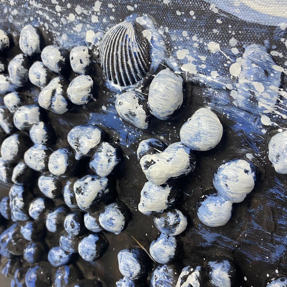 Beach Shells 1 Painted Canvas with Silver Frame 40x100