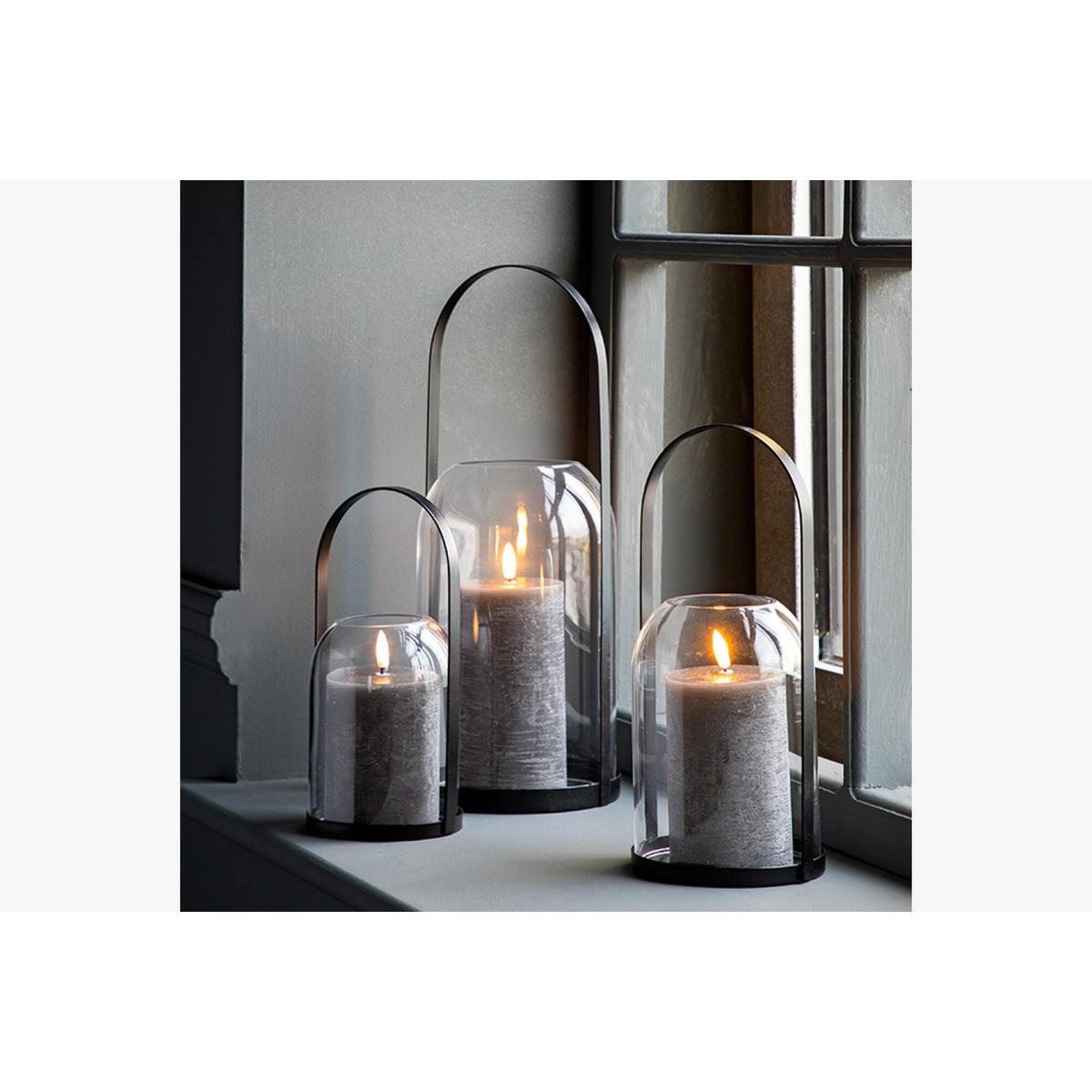 Understated and elegantly modern. The Beacon lanterns effortless matt black finished handle and base perfectly combine with the beautifully curved glass dome. Create a refined and sophisticated display in your home by combining different sizes.