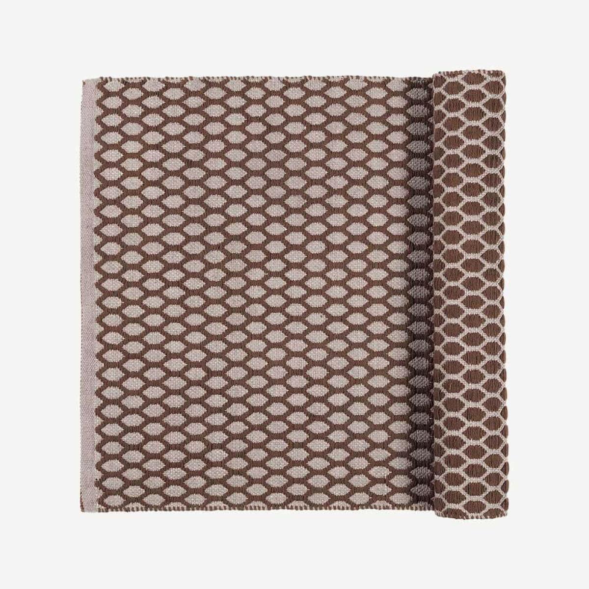 Add the Beadon honeycomb rug in a rich coffee and grape shade to living areas to inject pattern and a modern touch. This long and large cotton rug is short tufted for softness and style plus will work nicely in a hallway or beneath a dining set to frame dining sets, bookcases or used beneath a bedside.