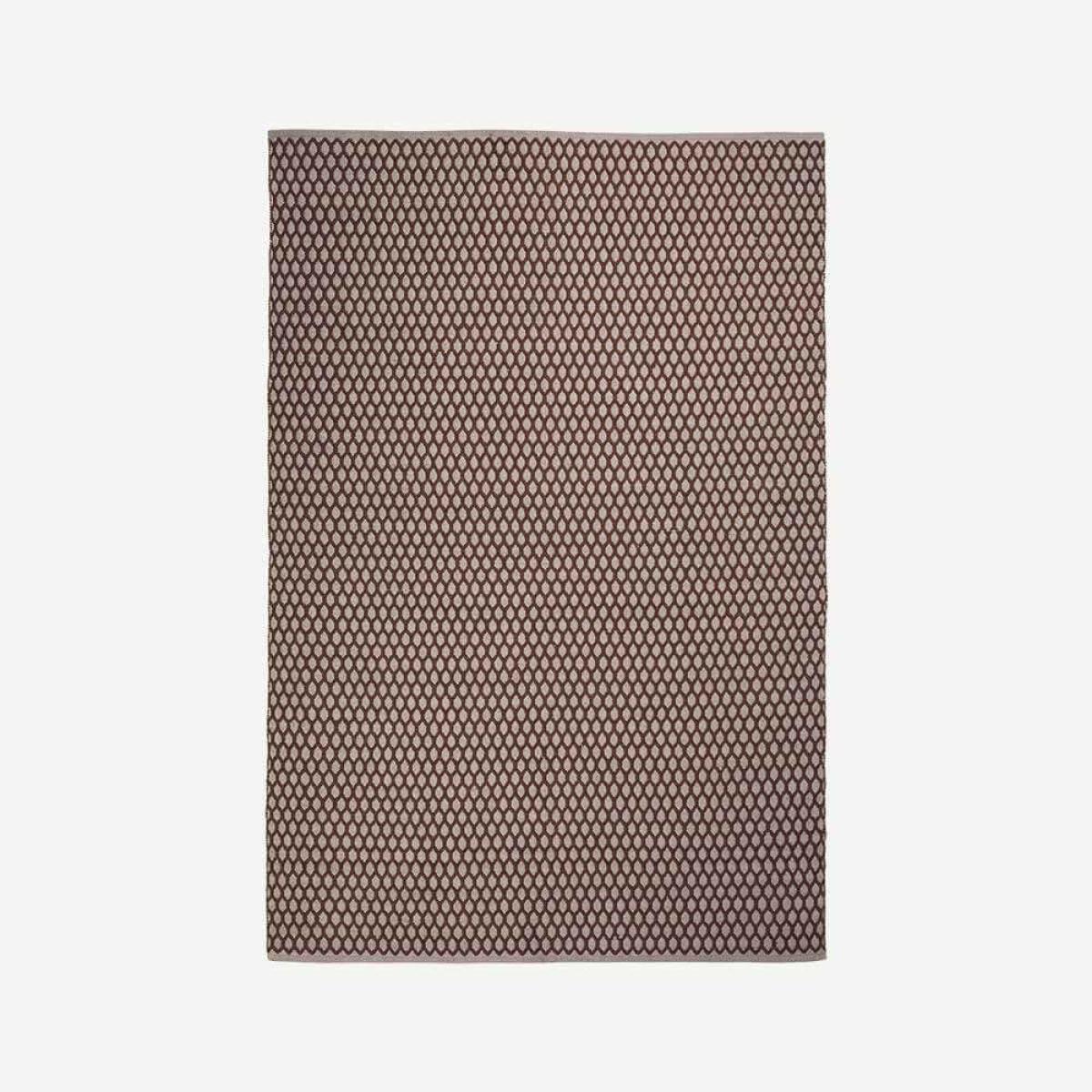 The intriguing design of this honeycomb rug will look fabulous in contemporary homes. This large cotton rug is short tufted for softness and style. The rectangle shape will allow this large brown / grape rug to be placed in several rooms, a living room or dining room perhaps. The memorable dual shades will go especially well with wood tones.