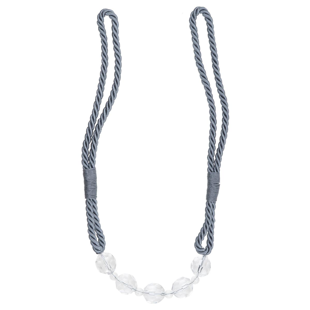 Keep your curtains held open in style with this beaded rope tie back. Created from a sturdy, thick rope, these tiebacks feature elegant clear beads and diamante rondels in the centre of the loop. These tiebacks will bring a touch of elegance to your decor while keeping your curtains looking neat and allowing lots of natural light to flood into your home.