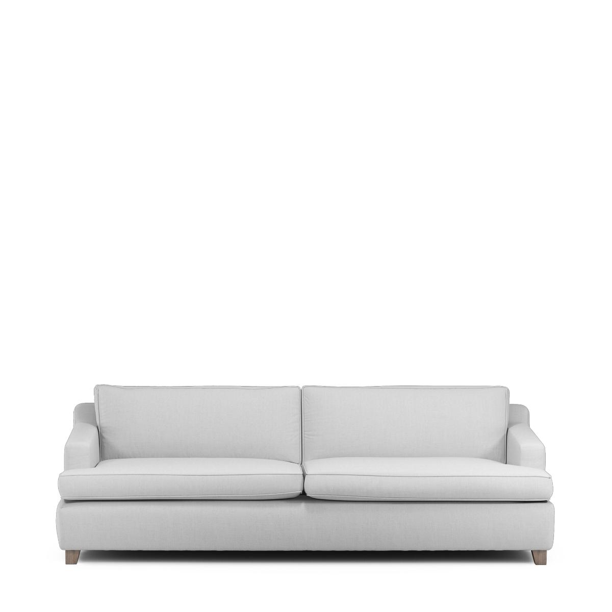The elegant Beale 3-Seater Sofa is quite the chameleon owing to its intrinsic ability to pull off every cut, shade and fabric imaginable. Part of its charm is that it looks just as graceful covered with dark red linen as it does upholstered in sumptuous charcoal velvet. Its short, tapered, oak legs, square arms and low-sitting frame give it a modern, clean-cut aesthetic. To ensure maximum comfort, the seat cushion's foam core is crowned with a feather topper. The Beale can be tailored to fit all kinds of spaces, as it is also available as an armchair, loveseat and various sizes of sofa. Choose from a wide range of fabric, colour and leg options.