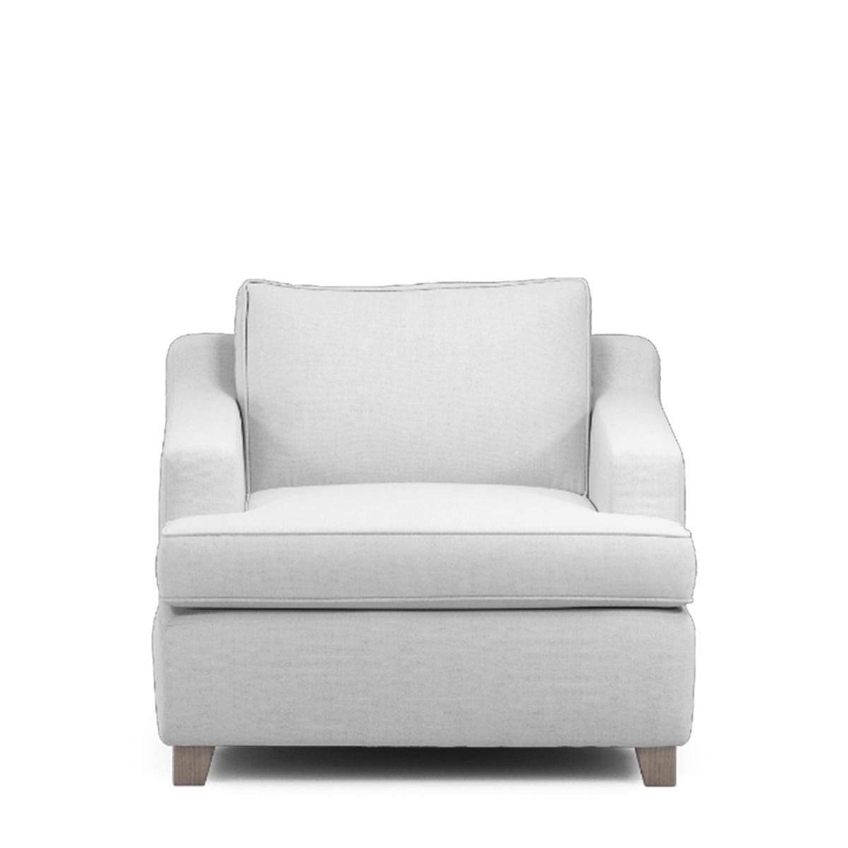 The elegant Beale Armchair is quite the chameleon owing to its intrinsic ability to pull off every cut, shade and fabric imaginable. Part of its charm is that it looks just as graceful covered with dark red linen as it does upholstered in sumptuous charcoal velvet. Its short, tapered, oak legs, square arms and low-sitting frame give it a modern, clean-cut aesthetic. To ensure maximum comfort, the seat cushion's foam core is crowned with a feather topper. The Beale can be tailored to fit all kinds of spaces, as it is also available as a loveseat and various sizes of sofa. Choose from a wide range of fabric, colour and leg options.