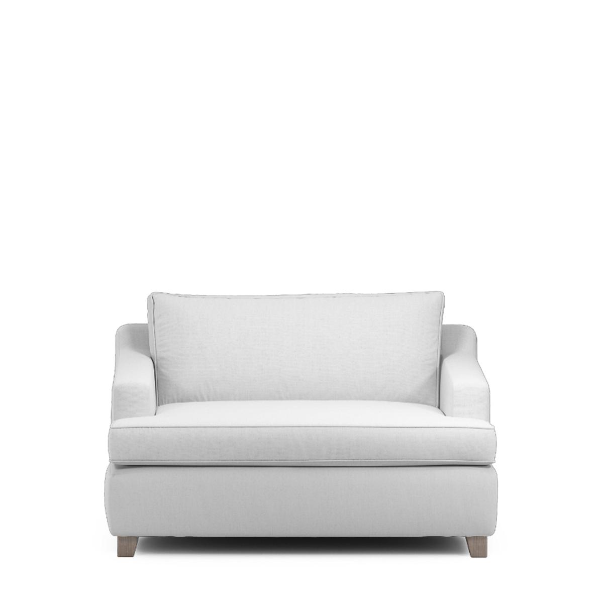 The elegant Beale Loveseat is quite the chameleon owing to its intrinsic ability to pull off every cut, shade and fabric imaginable. Part of its charm is that it looks just as graceful covered with dark red linen as it does upholstered in sumptuous charcoal velvet. Its short, tapered, oak legs, square arms and low-sitting frame give it a modern, clean-cut aesthetic. To ensure maximum comfort, the seat cushion's foam core is crowned with a feather topper. The Beale can be tailored to fit all kinds of spaces, as it is also available as an armchair and various sizes of sofa. Choose from a wide range of fabric, colour and leg options.