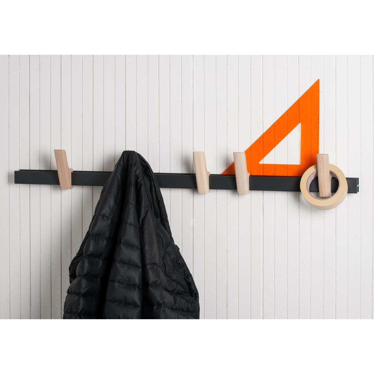 Beam Wall coat rack - L 60 cm - 4 hooks by Hay Black
