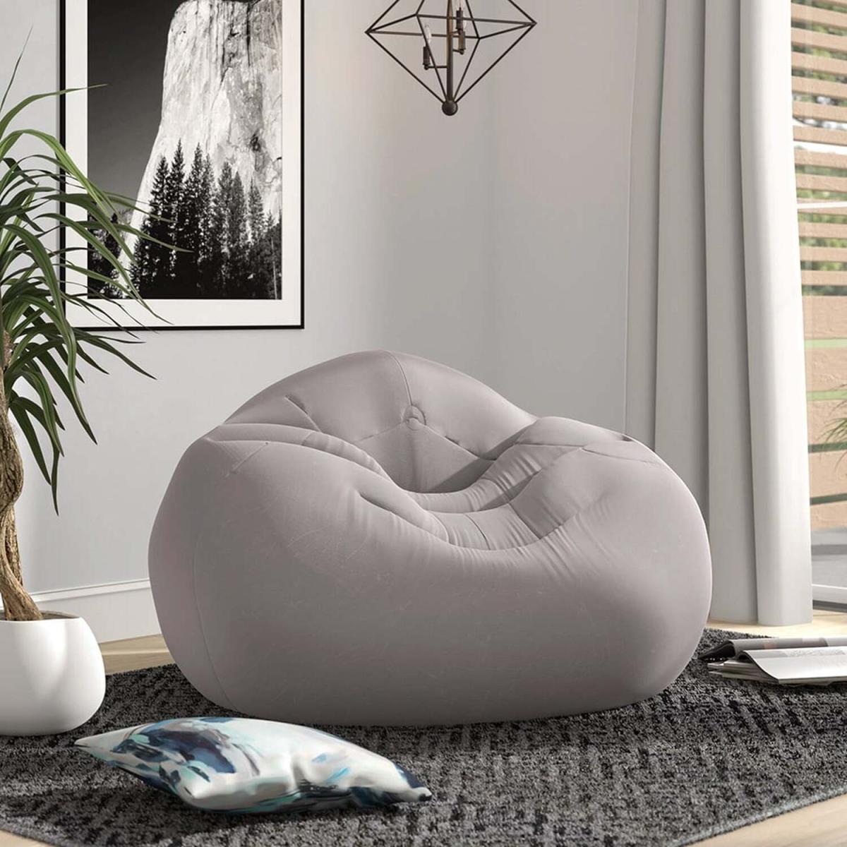 I love this beanless bag inflatable chair for its relaxed, contemporary look-perfect for casual living spaces or cozy reading nooks. Its soft grey tone is versatile, pairing well with both neutral palettes and more vibrant colour schemes. A great styling tip is to keep the surrounding décor minimal, letting the chair be a focal point, or layer with textured throws and cushions for added comfort. It works well in modern, Scandinavian, or even eclectic interiors, especially because it’s lightweight and easy to move around, making it ideal for multi-purpose rooms or flexible seating arrangements. Keep in mind its relaxed vibe-pair it with sleek furniture for contrast or complement its casual charm with softer accessories.
