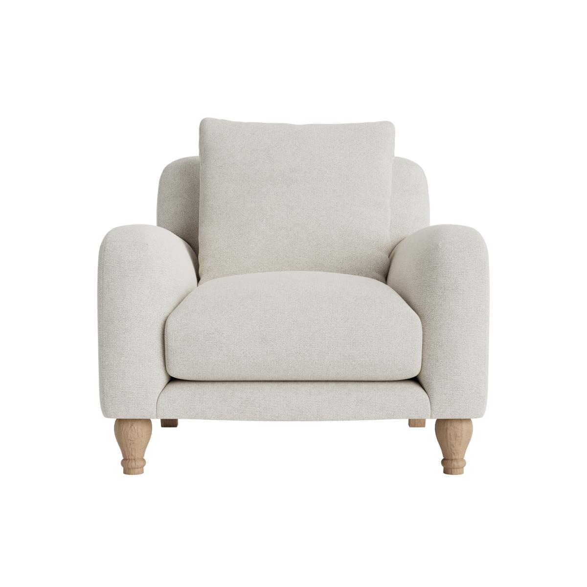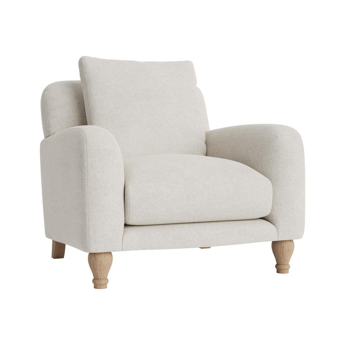 I love this armchair for its inviting, plush design that combines comfort with understated elegance. It works particularly well in cosy living rooms or in schemes that lean towards Scandi or contemporary styles due to its clean lines and neutral tone. To style it effectively, consider pairing with textured cushions or a throw in contrasting colours to add visual interest. It also works nicely with mid-century accessories or natural materials like wooden side tables and softwoven rugs, creating a welcoming and balanced atmosphere. Practical tips include positioning it near a reading light or alongside a small side table, making it both a stylish and functional piece in any living space.