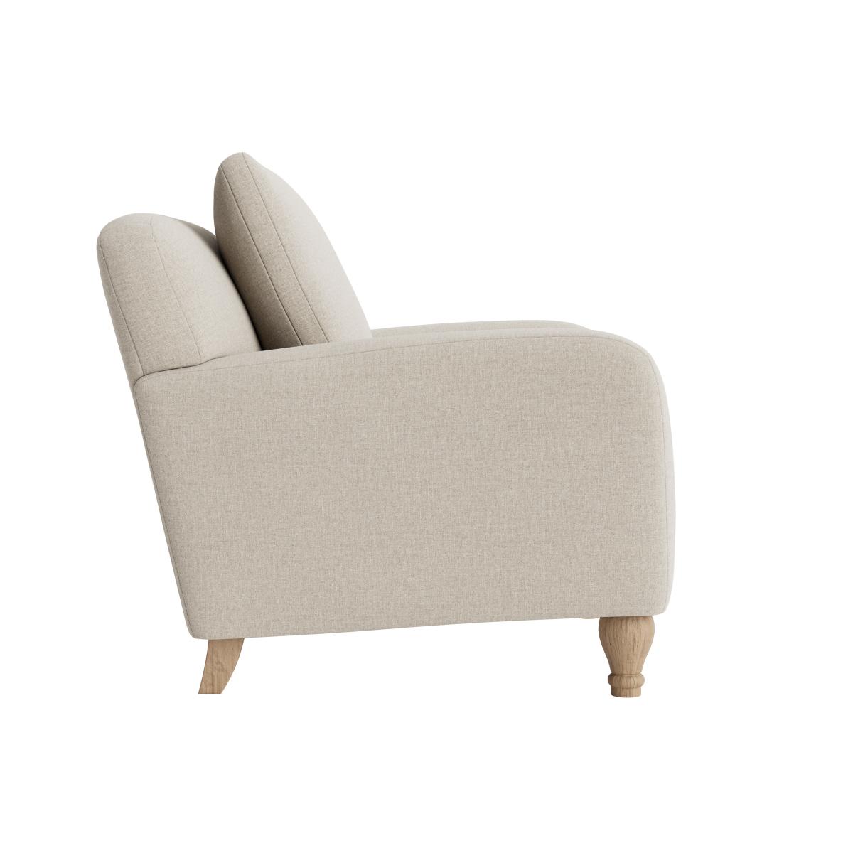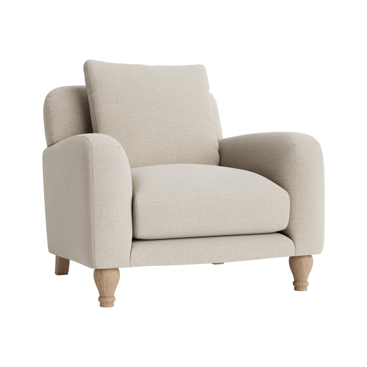 I love this armchair for its cosy, inviting design and versatile neutral tone, which makes it a great addition to a variety of interiors. It works particularly well in contemporary or Scandi-inspired spaces, where its soft curves and understated style can complement minimalist furnishings. Practical styling tips include pairing it with textured throws or patterned cushions to add visual interest, or placing it near a window to create a perfect reading nook. Its sturdy wooden legs give it a timeless appeal, while its plush cushioning ensures maximum comfort, making it both stylish and functional for everyday living.