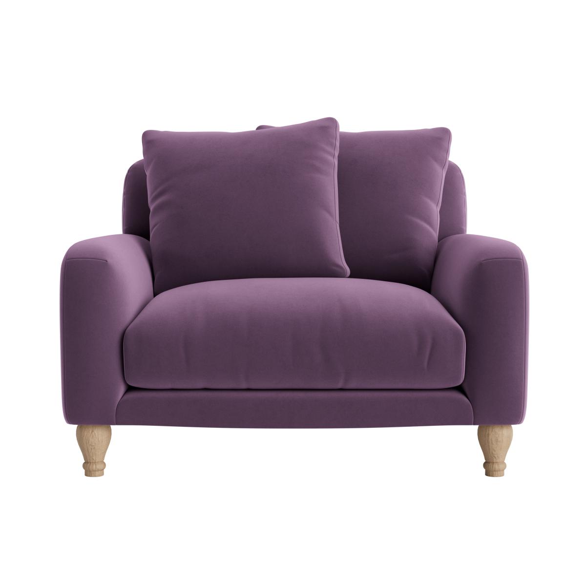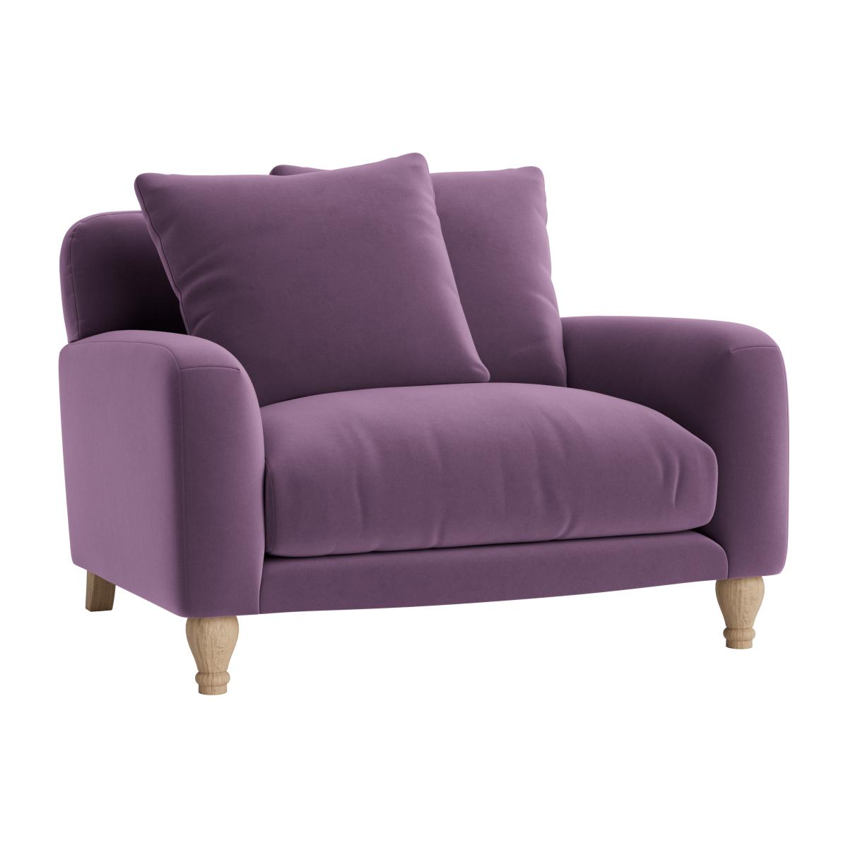 I love this little sofa for its cosy, inviting feel and versatile style. It works particularly well in small living spaces or as a charming accent piece in a larger room. Its soft lavender hue makes it ideal for contemporary, minimalist, or even vintage-inspired interiors, adding a pop of colour without overpowering the scheme. To style it effectively, consider pairing with neutral or slightly muted tones for a balanced look, and accessorise with patterned cushions or throws for added visual interest. Its compact size also makes it perfect for creating a relaxed, informal setting - think pairing with a rug and some soft lighting for the ultimate comfy corner.