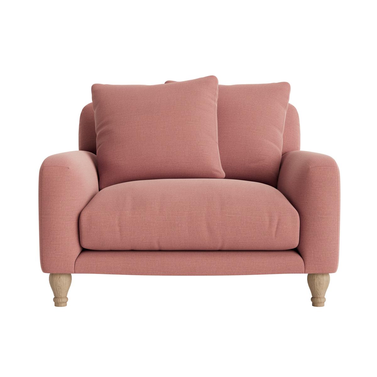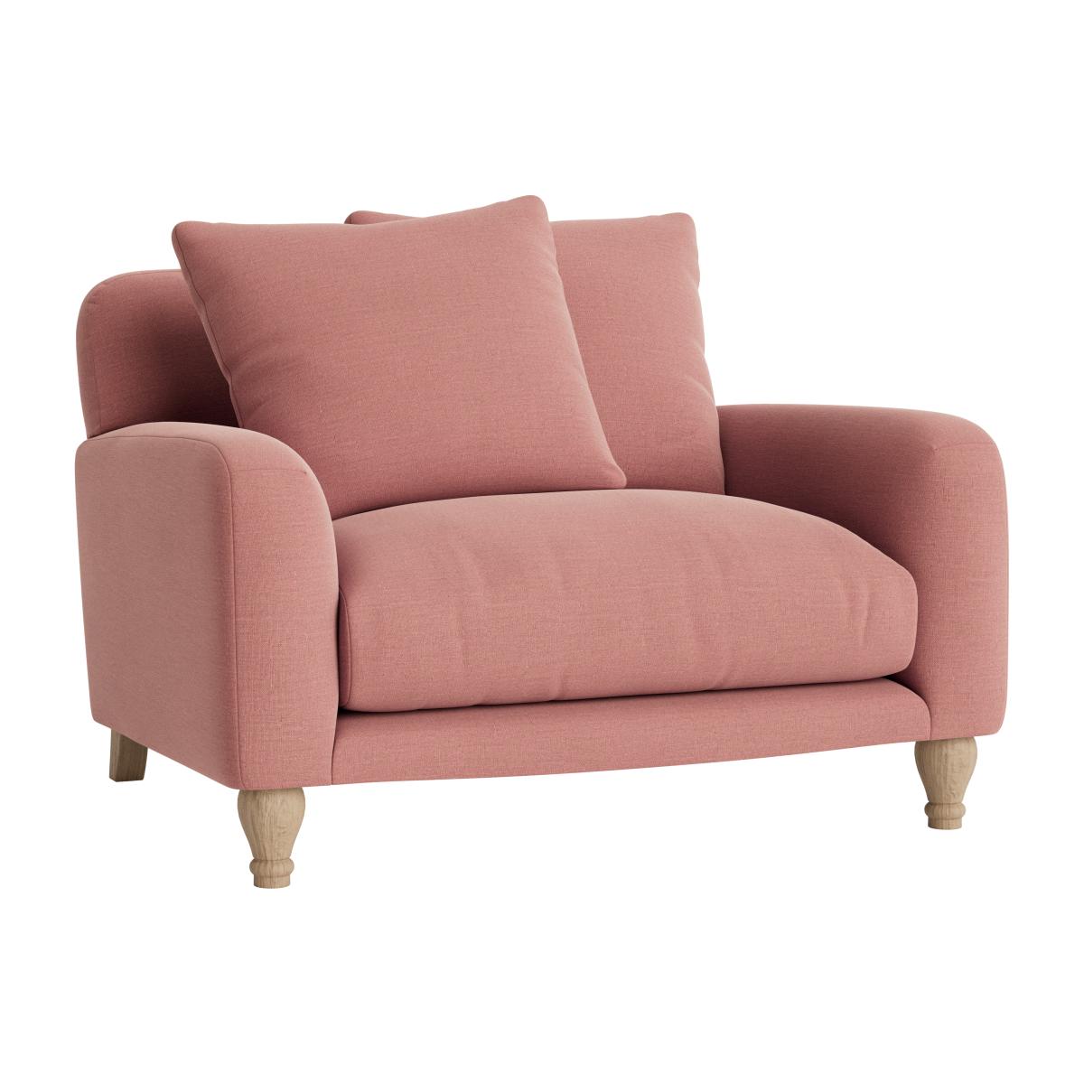 The Bear Hug love seat is a charming piece that works well in both modern and vintage-inspired interiors, offering a cosy and inviting feel. I love its soft pink hue, which adds a subtle pop of colour without overwhelming the space, making it versatile for various colour schemes. To style it effectively, consider pairing it with neutral tones or warm naturals to create a relaxed, welcoming vibe. Practical tips include adding textured cushions or throws for extra comfort and visual interest, or positioning it near a statement piece, like a vintage side table or a bold rug, to anchor the space. Its compact size makes it perfect for smaller living rooms or cosy corners, transforming an everyday spot into a comfortable retreat.