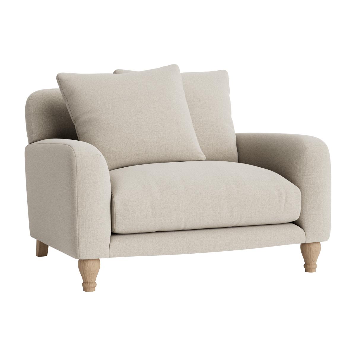 I love this little love seat for its versatile and timeless design, which makes it a great addition to both traditional and modern interiors. It works particularly well in cosy living rooms, flats, or areas where space is limited, thanks to its compact size. To style it effectively, consider pairing it with neutral or soft-toned accessories for a calming look, or add colourful cushions for a touch of personality. Practical tips include placing a throw on the back for extra comfort, and pairing it with a small side table or a floor lamp to create a functional, inviting nook. The natural wood legs lend an additional touch of warmth, making it easy to integrate into a range of colour schemes and stylistic themes.