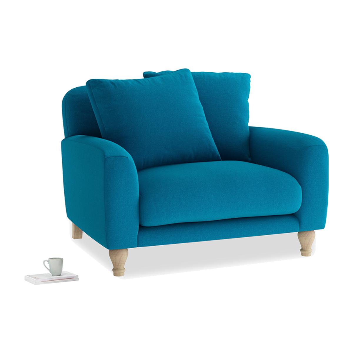The Bear Hug love seat is a fantastic addition for creating a cosy, inviting space, especially in smaller or more relaxed interiors. Its vibrant teal colour adds a playful yet sophisticated touch that can serve as a statement piece without overwhelming the room. I love how versatile it is-works particularly well in contemporary, eclectic, and transitional schemes. For styling tips, pair it with textured cushions and a neutral or patterned rug to ground the look. It also lends itself well to layering with soft throws for added comfort and visual interest. Its compact size makes it ideal for a nook or as additional seating in a living room, making it both practical and stylish.