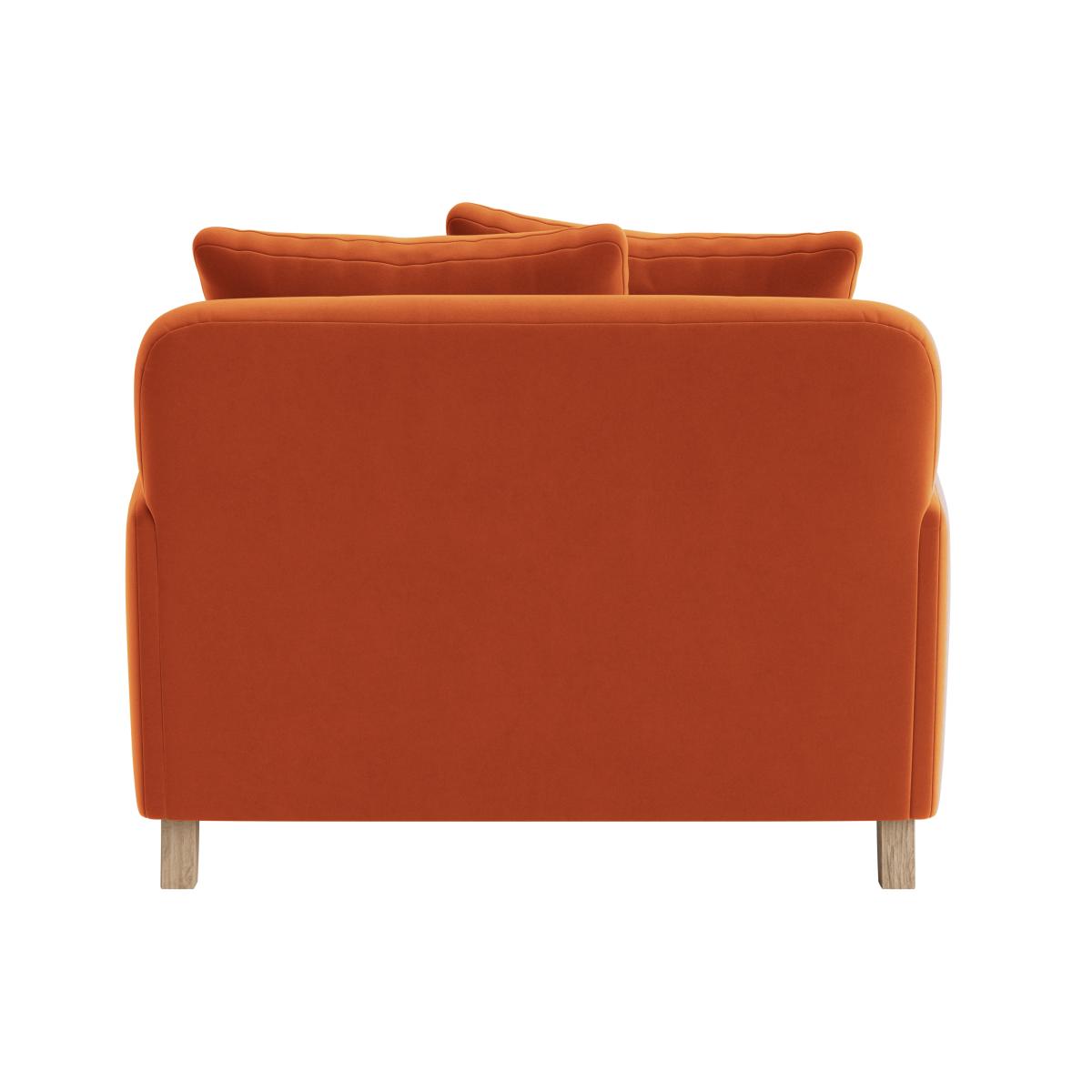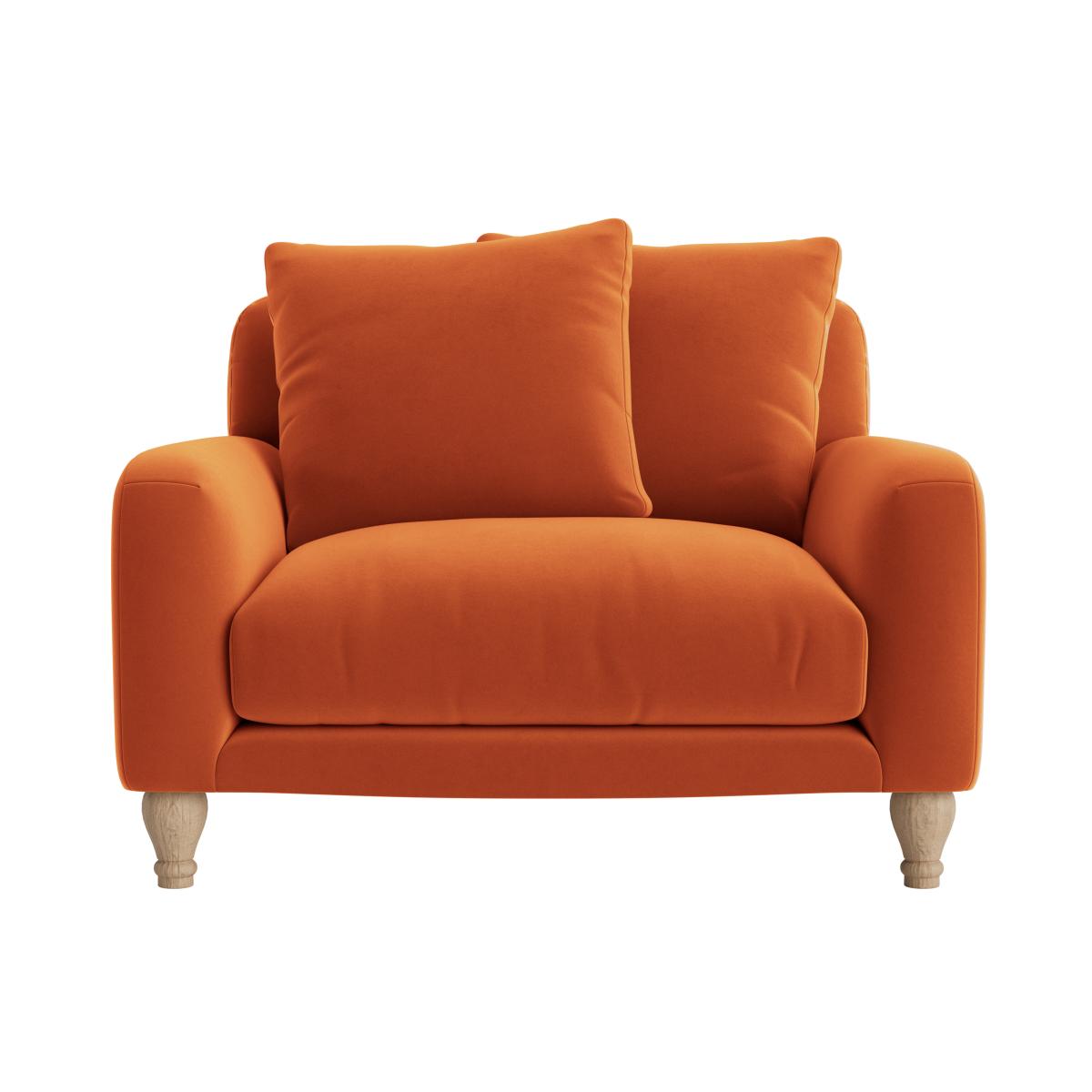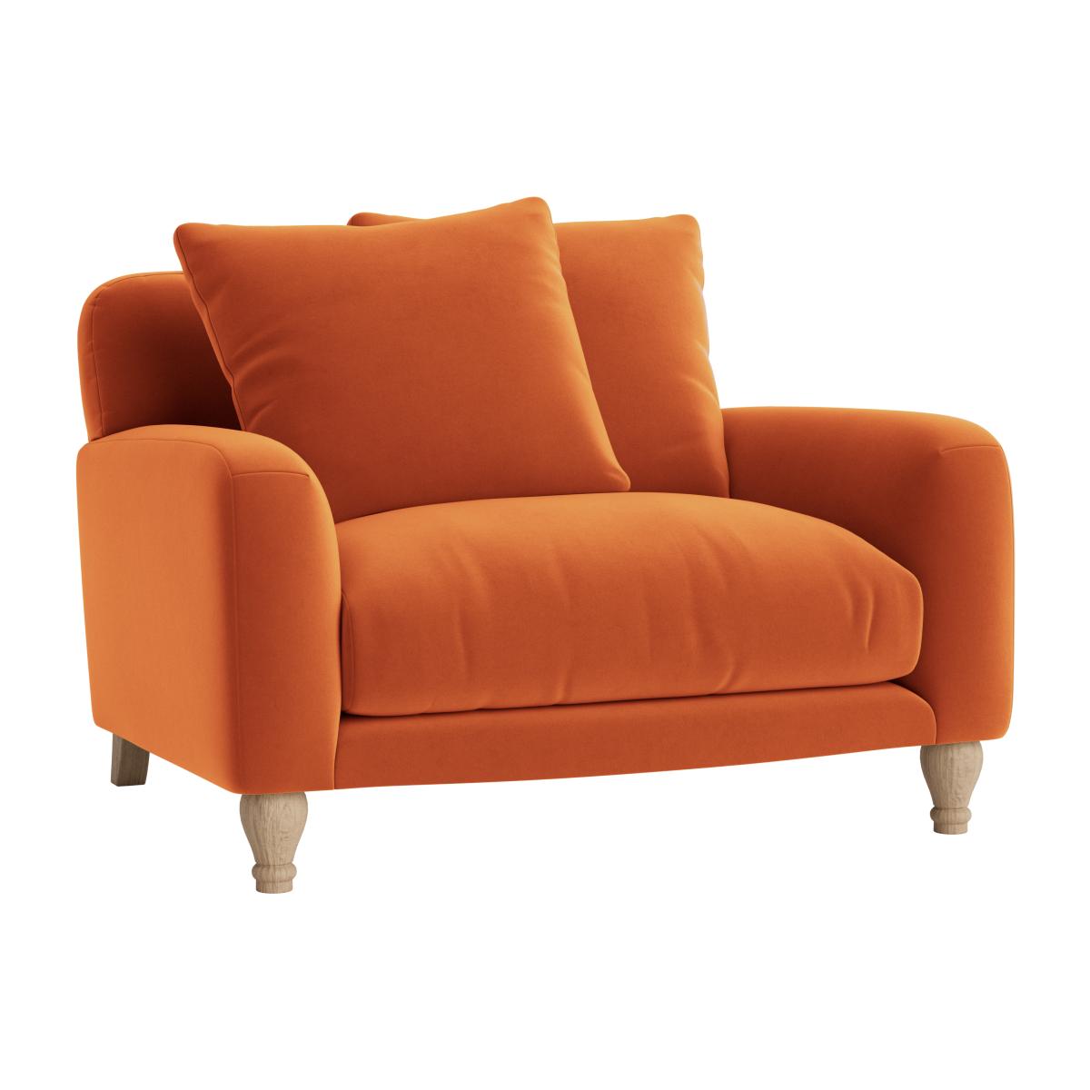 I love this snuggly little number for its versatile charm and cosy appeal. The bear hug love seat works beautifully in both modern and traditional interiors, adding a pop of colour in neutral spaces or complementing bolder palettes. Its warm, inviting hue makes it ideal for creating a cosy corner in a lounge or reading nook. To style it effectively, consider pairing with textured cushions or throws in contrasting shades or patterns for added visual interest. It also enjoys pairing with natural materials like wood or rattan, or contrasting with sleek, contemporary pieces for an eclectic vibe. Its compact size makes it a practical choice for smaller rooms or as an additional seating option without dominating the space.